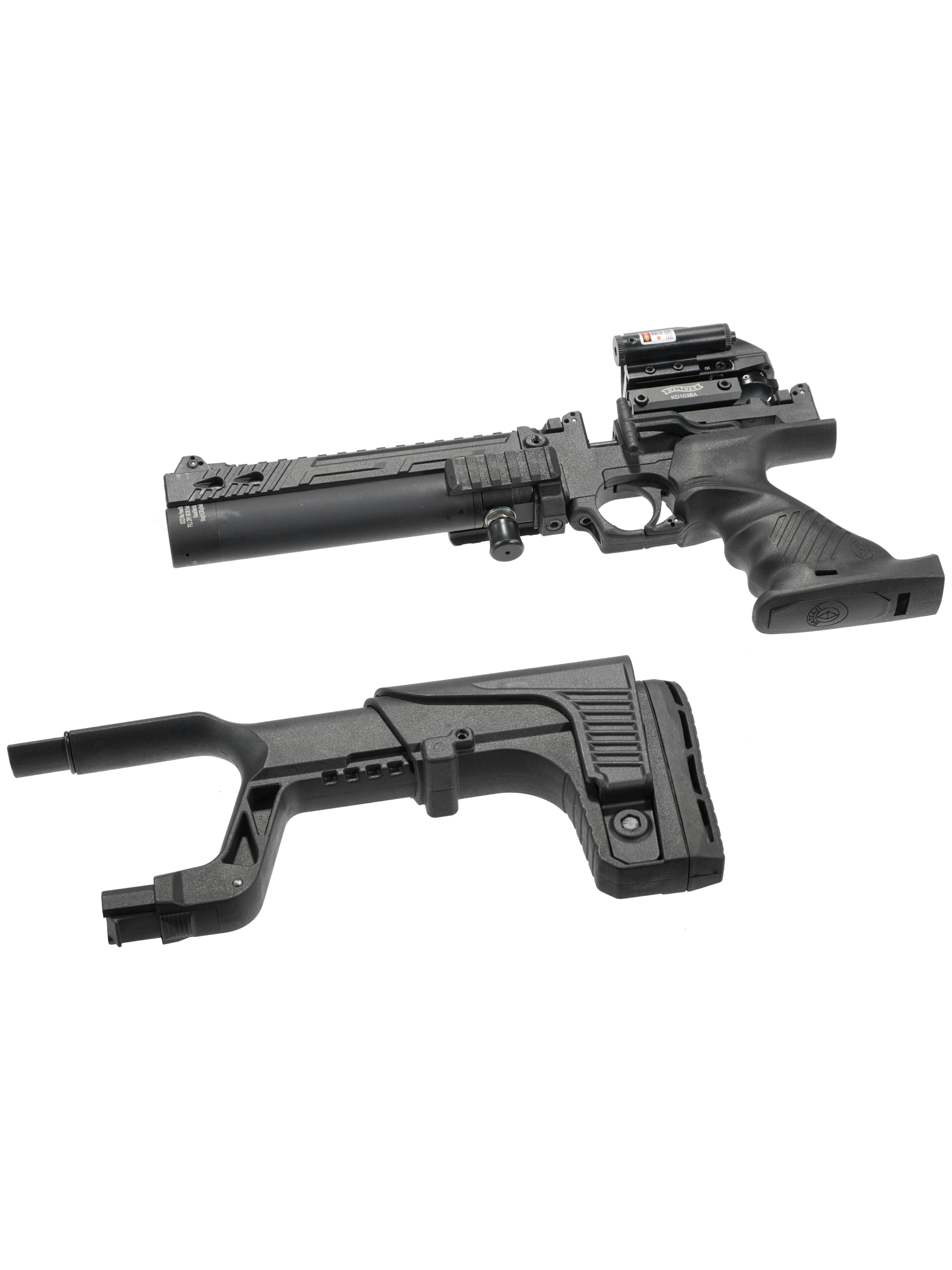 | Комплектация (?): | пистолет, приклад, пулевой лоток, 2 магазина, заправочный штуцер, кейс, паспорт (инструкция), коробка |