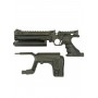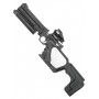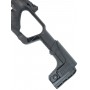 Комплектация изделия позволяет пользователю в нужное время трансформировать пистолет в полноценный укороченный карабин. Для этого необходимо прикрепить съемный приклад, настроить его габариты под свои антропометрические параметры и выставить прицел. В образце предусмотрено три прицельных устройства – мушки и целик складываются и откидываются по необходимости.