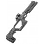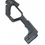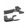 Комплектация изделия позволяет пользователю в нужное время трансформировать пистолет в полноценный укороченный карабин. Для этого необходимо прикрепить съемный приклад, настроить его габариты под свои антропометрические параметры и выставить прицел. В образце предусмотрено три прицельных устройства – мушки и целик складываются и откидываются по необходимости.