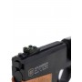 Корпус пистолета выполнен из прочного металлического сплава, ствол – из стали, а эргономичная рукоятка – из дерева, что придает оружию солидный вид и обеспечивает комфортное удержание. Длина пистолета составляет 350 мм, а длина ствола – 240 мм. Вес в 1250 г говорит о надежности конструкции.
