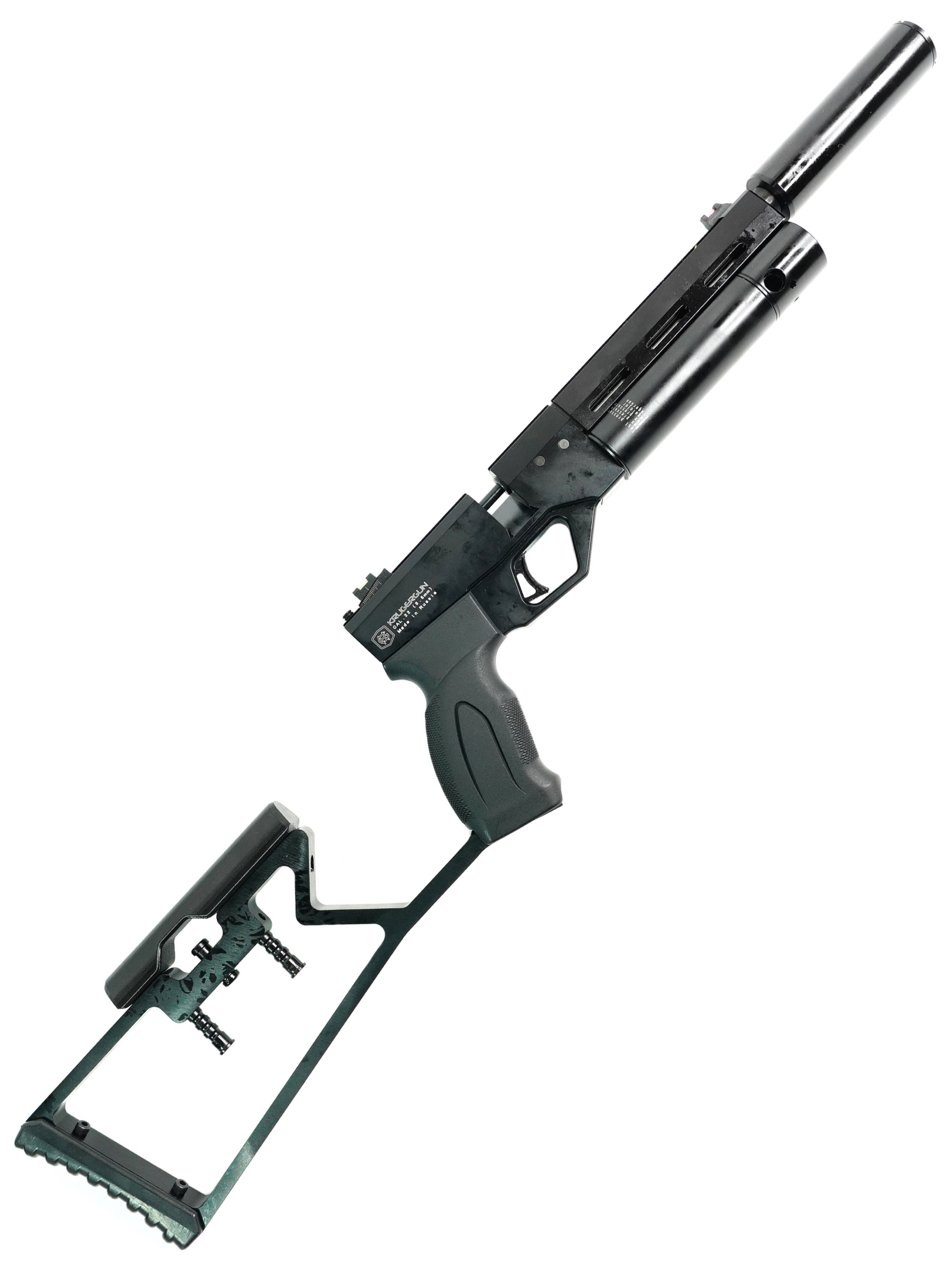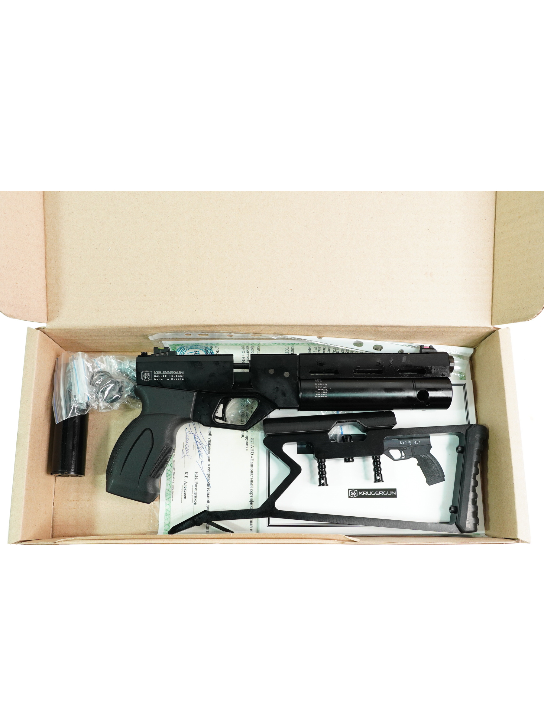 | Комплектация (?): | пистолет, приклад, магазин, ЗИП, заправочный штуцер, саундмодератор, паспорт (инструкция), коробка |