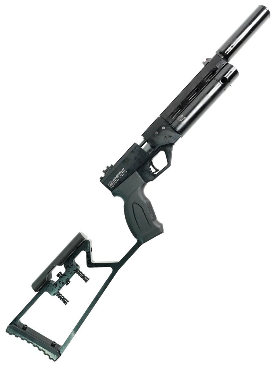 Комплектация (?): | пистолет, приклад, магазин, ЗИП, заправочный штуцер, саундмодератор, паспорт (инструкция), коробка |