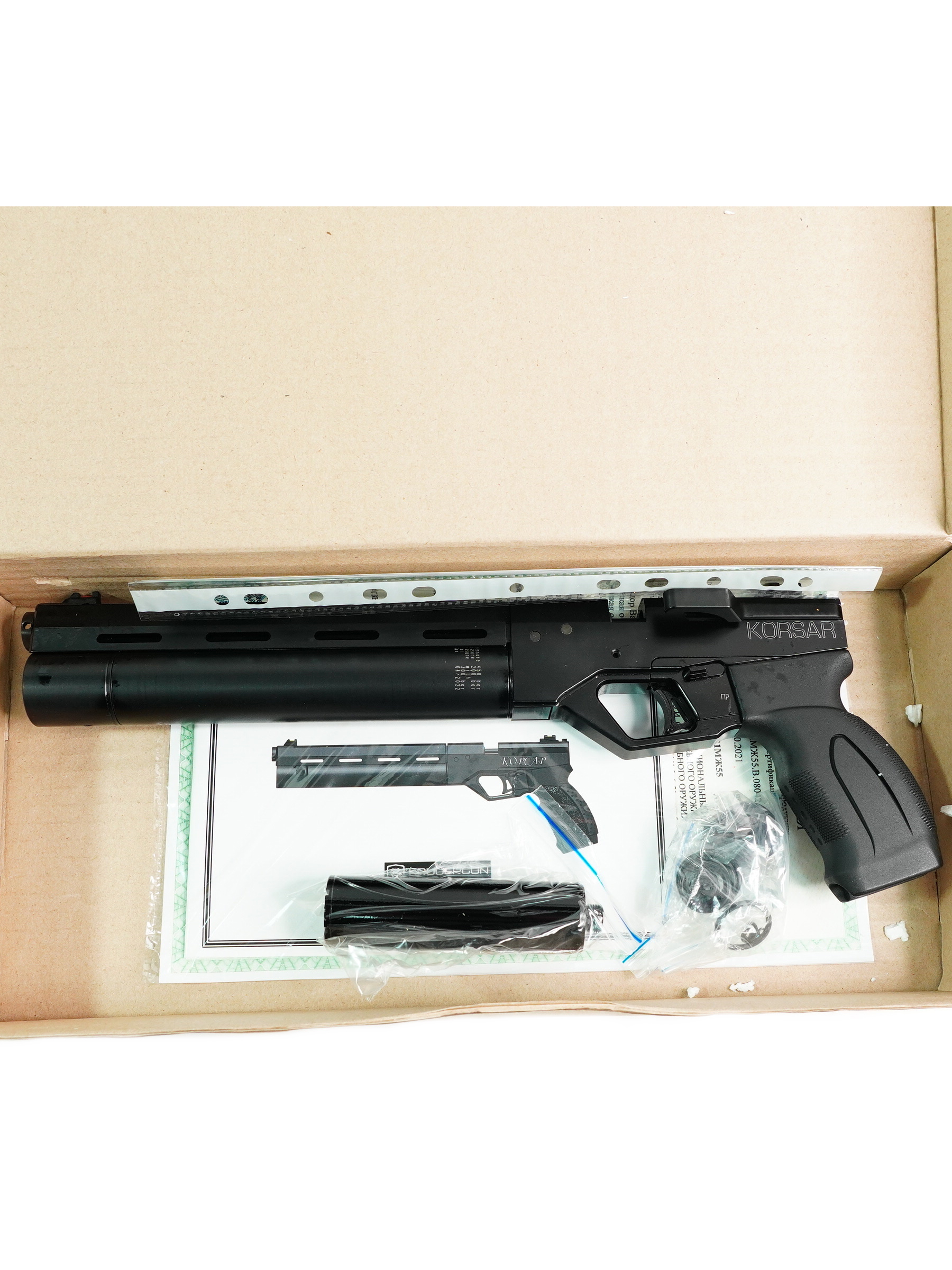 | Комплектация (?): | пистолет, магазин, ЗИП, заправочный штуцер, саундмодератор, паспорт (инструкция), коробка |