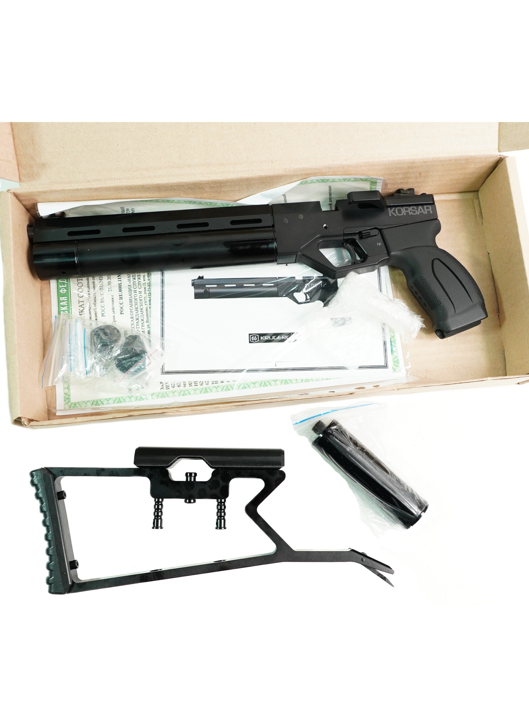 | Комплектация (?): | пистолет, приклад, магазин, ЗИП, заправочный штуцер, саундмодератор, паспорт (инструкция), коробка |