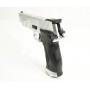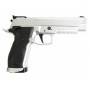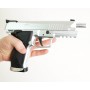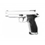 Высокую прочность и хороший ресурс пистолету обеспечивает использование металлического сплава для ответственных механизмов, основы и корпуса. Мушка с регулируемым целиком – прицельные приспособления пистолета. Ниже ствола установлена направляющая для дополнительных аксессуаров. Вес пистолета 1,22 кг, длина 22 см. В комплекте идет магазин с паспортом.