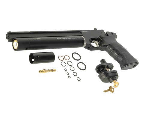 Комплектация (?): | пистолет, замок-предохранитель на курок, переходник для заправки, комплект запасных манжет, инструкция |