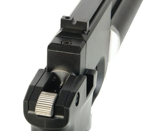Основной материал изготовления пистолета – металл, корпус выполнен из пластика. Штатные прицельные приспособления здесь открытого типа, нерегулируемые мушка и целик. Для установки оптики предусмотрена направляющая «ласточкин хвост».