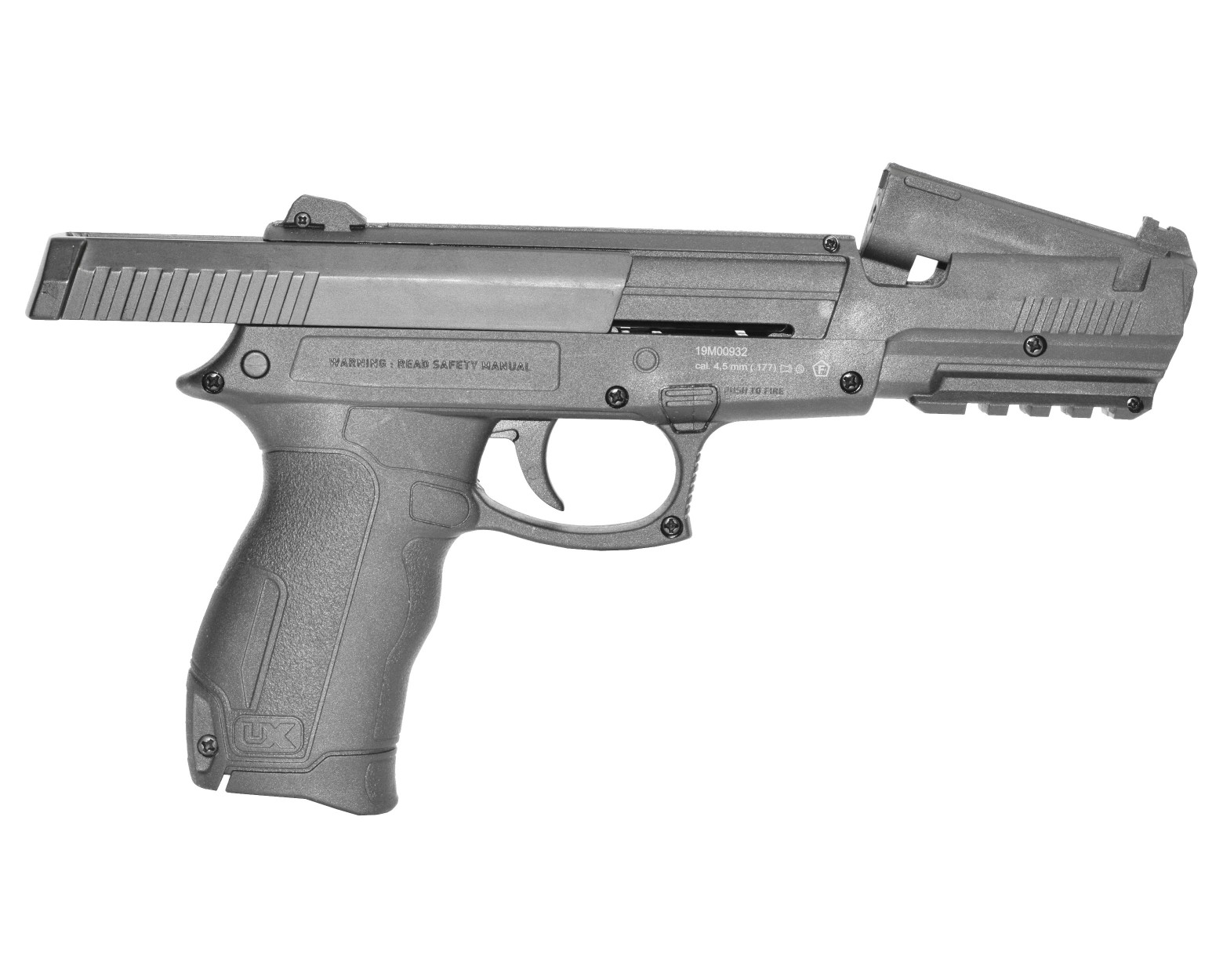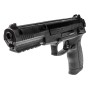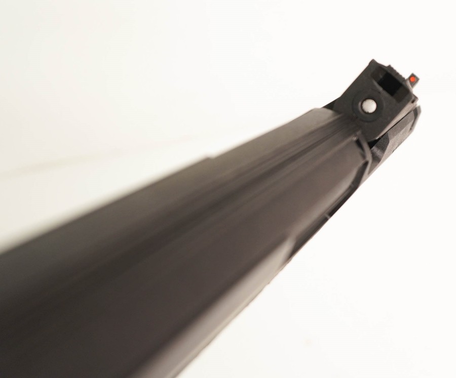 Конструкция имеет кнопочный неавтоматический предохранитель, он установлен перед спусковым крючком и удобен для переключения одним пальцем. Для ствола и затвора пистолета Umarex DX17 использован металлический сплав.