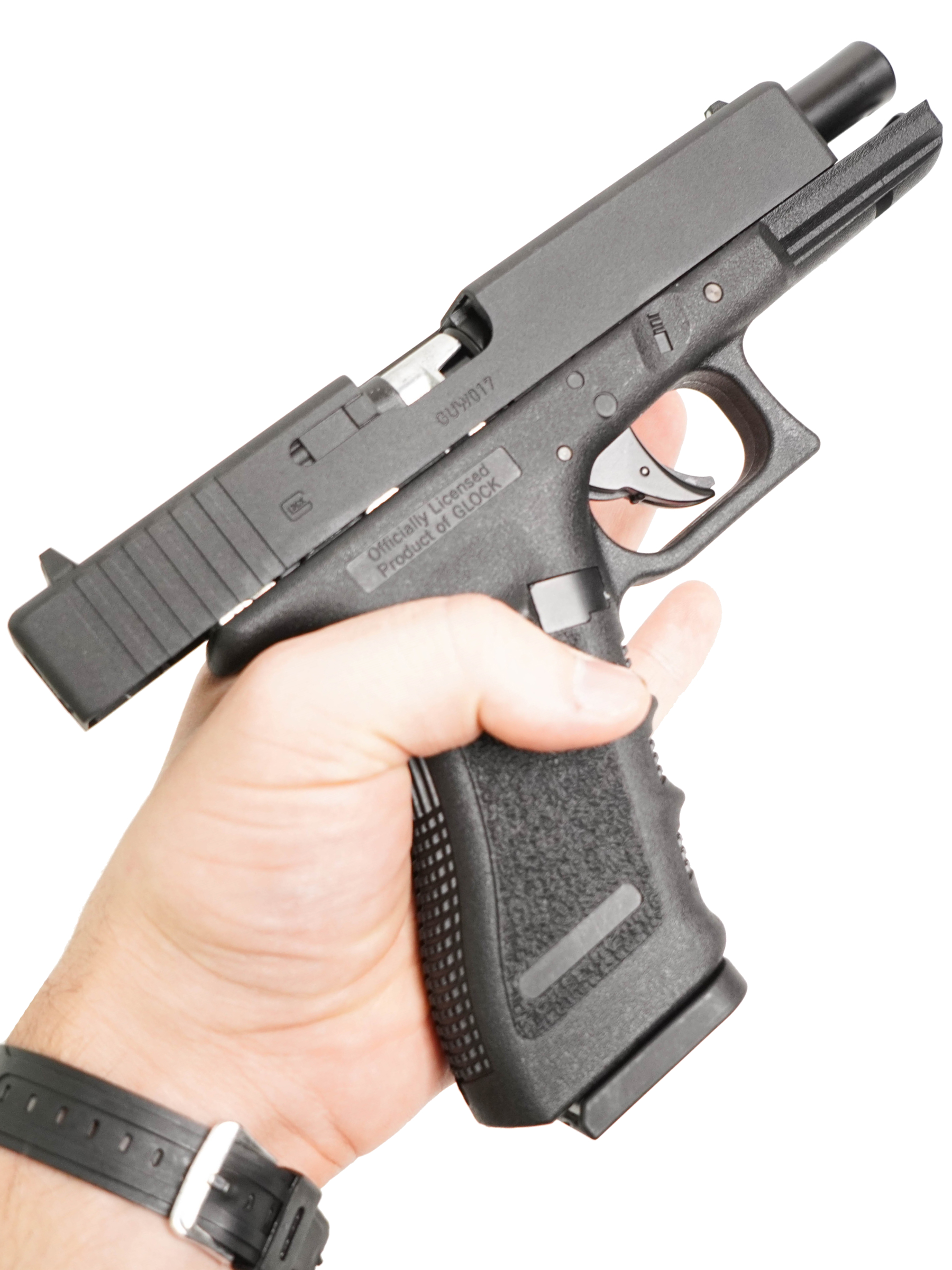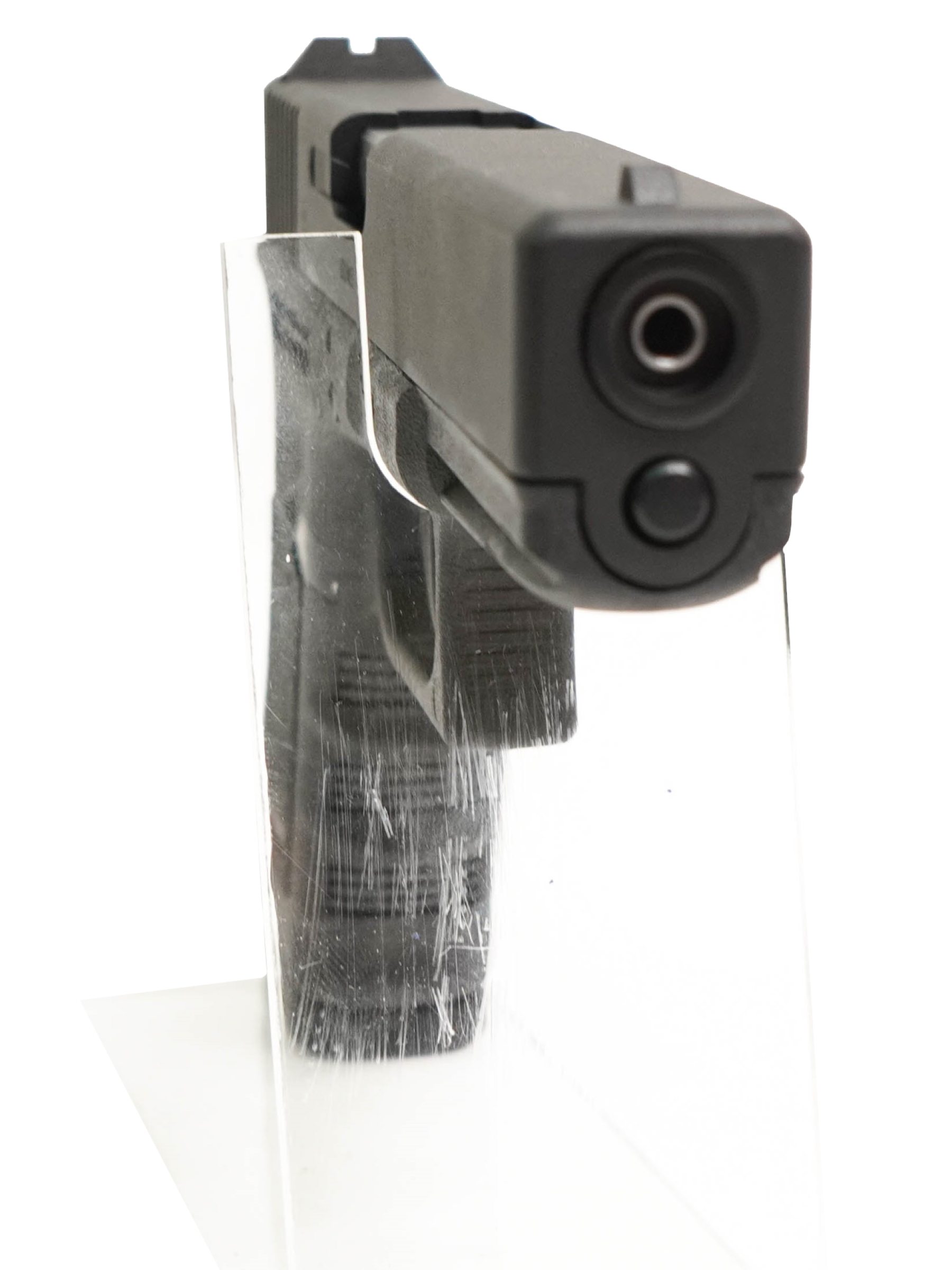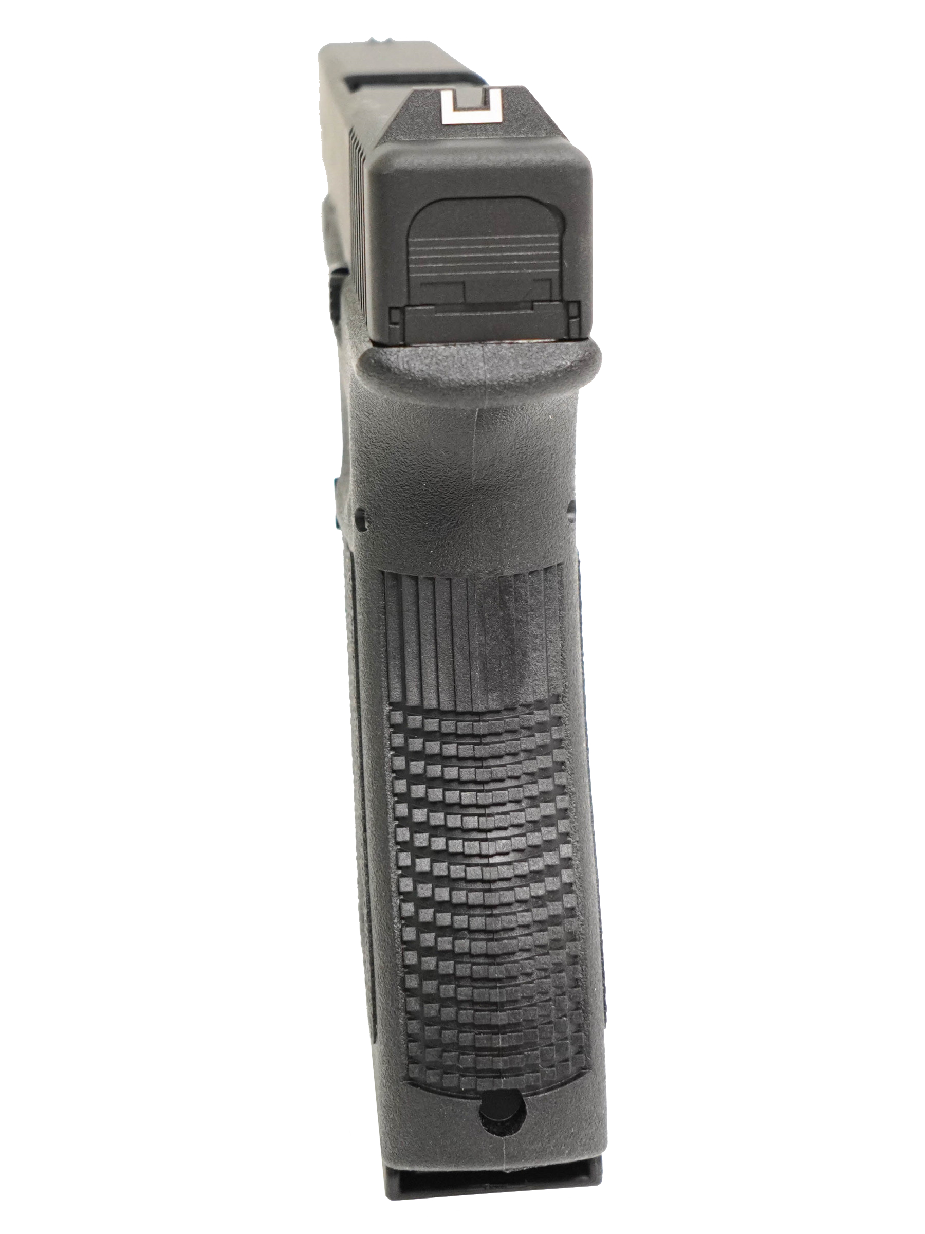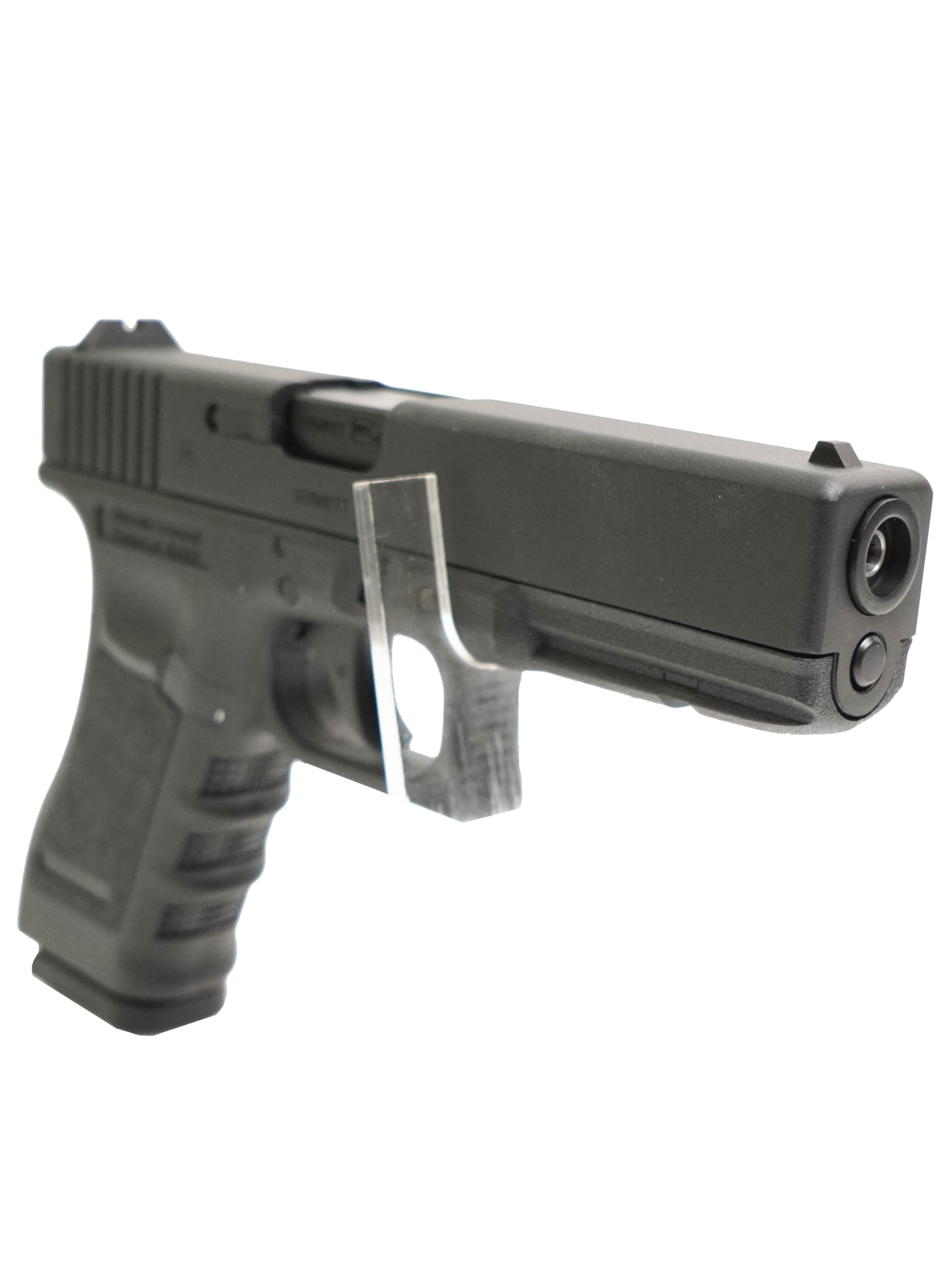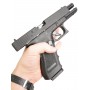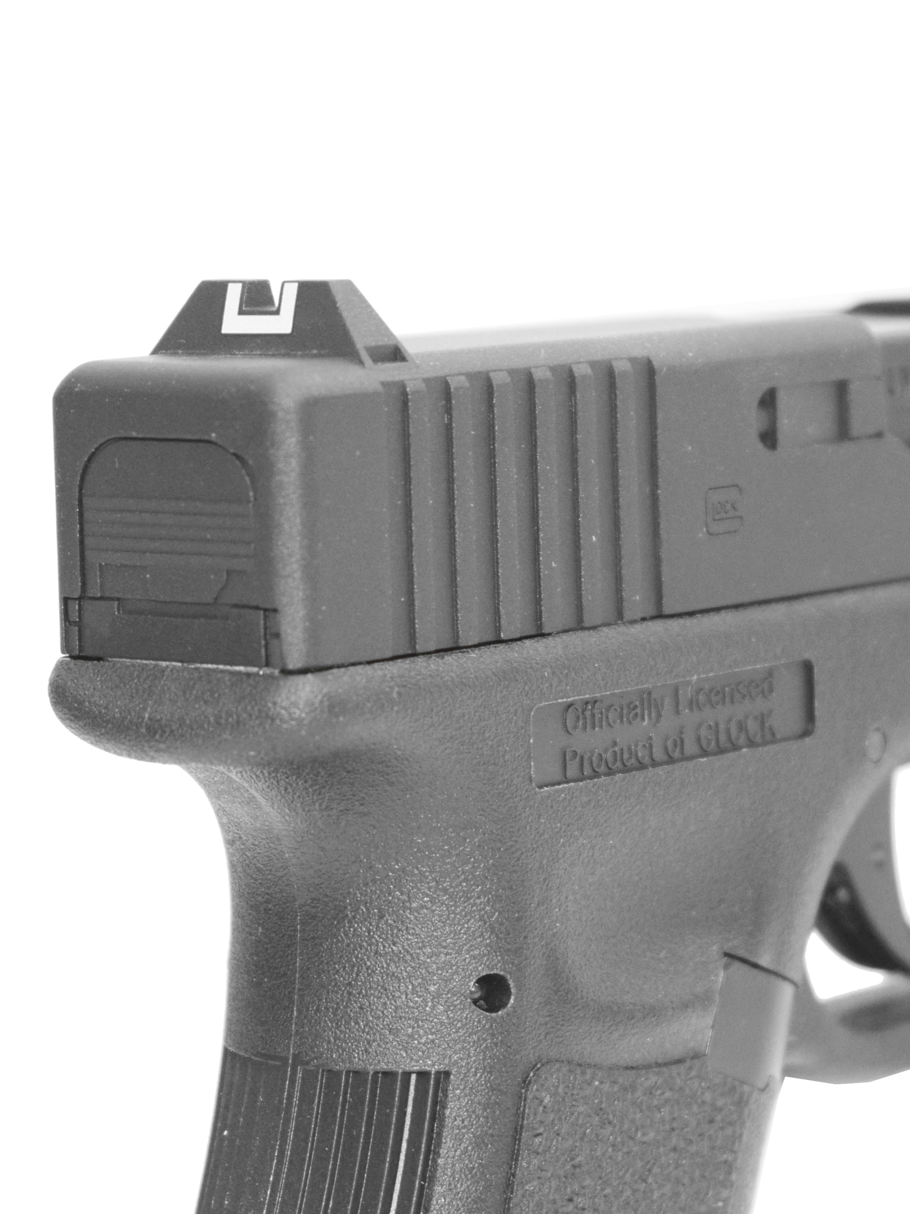 Предохранитель в данном пистолете находится под стволом, выполнен в виде переключателя огня из положений Safe(предохранитель) - Fire(огонь). Пистолет так же имеет предохранительный рычаг, которым снабжён спусковой крючок, блокирует его движение назад и освобождает только при осознанном нажатии стрелка, фирма Glock назвала эту систему Safe Action.