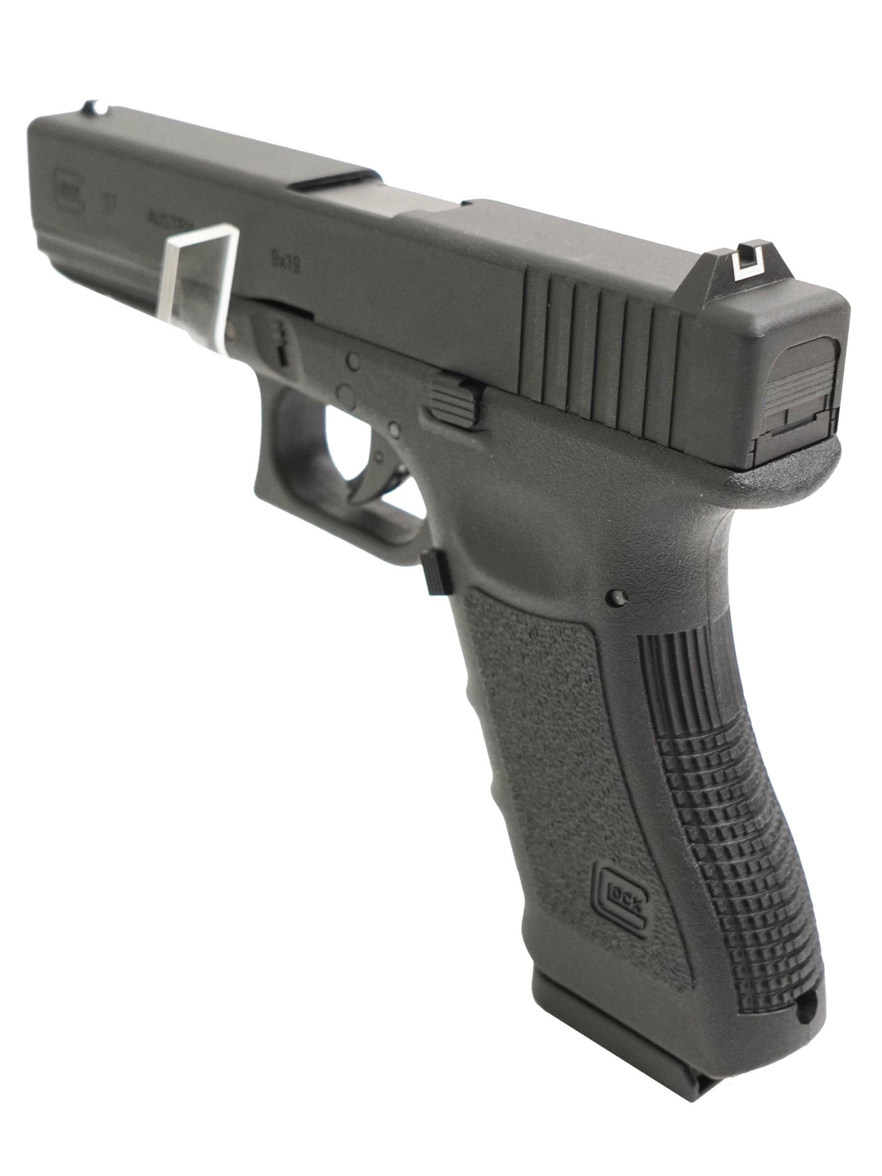 Материалы, используемые при производстве Umarex Glock 17 – металл и пластик. Модель выделяется высоким качеством сборки. Под стволом пистолета установлена подствольная планка для ЛЦУ или фонаря. Мушка и целик модели неподвижные.