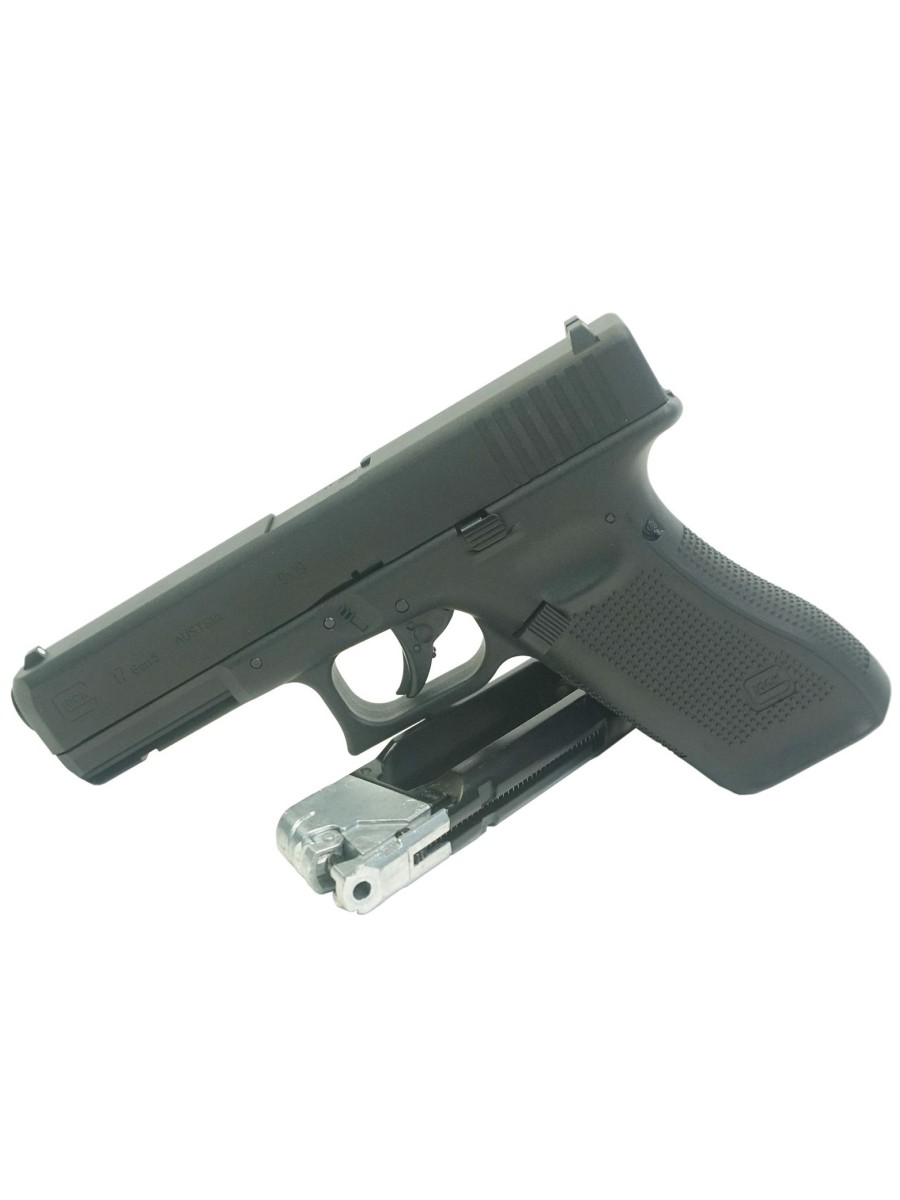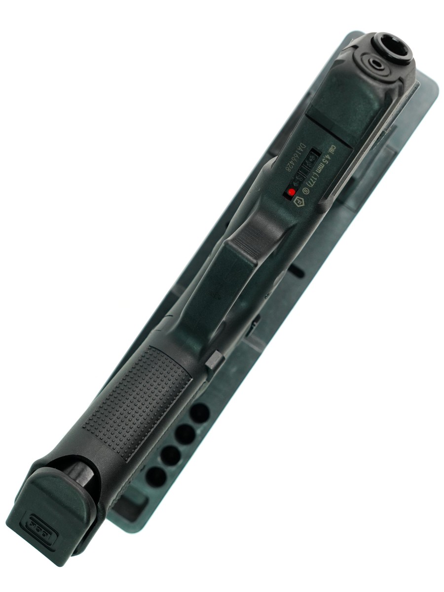Пневматический пистолет Glock 17 Gen.5 от Umarex представляет собой 4,5-мм реплику, использующую стальные шарики BB. Магазин, как и у огнестрельного прототипа, рассчитан на 18 зарядов и размещается в рукоятке, а его извлечение осуществляется кнопкой с левой стороны. Энергией для выстрела служит 12-г баллончик CO2, устанавливаемый в магазин и прокалываемый поджимным винтом. Важно учитывать, что при интенсивной стрельбе может потребоваться пауза для восстановления давления газа.