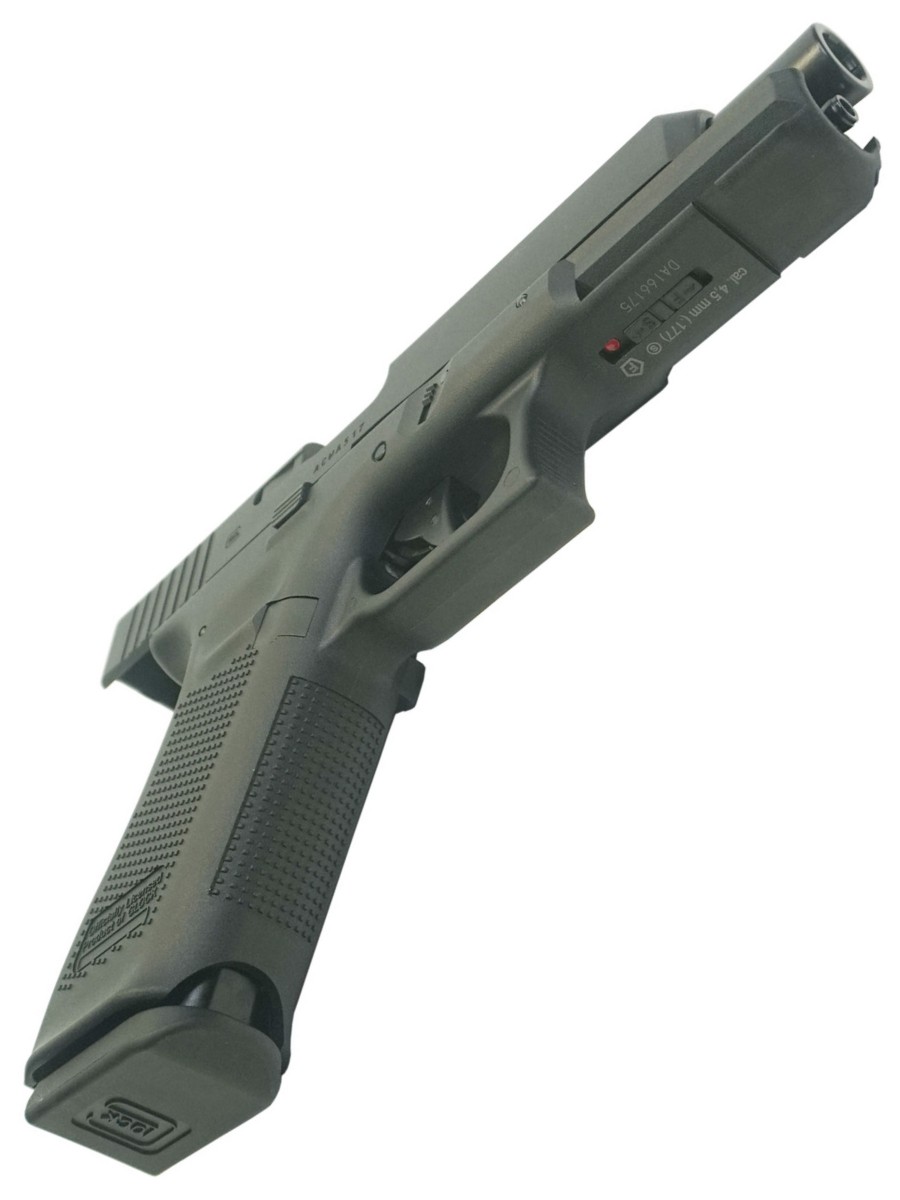 Мощность пистолета не превышает 3 Дж, что позволяет приобрести его без лицензии. Дульная энергия обеспечивает шарику скорость более 100 м/с. Реализован предохранитель на спусковом крючке, повторяющий принцип работы боевого аналога и предотвращающий случайные выстрелы. Предохранитель в данном пистолете находится под стволом, выполнен в виде переключателя огня из положений Safe(предохранитель) - Fire(огонь). Пистолет так же имеет предохранительный рычаг, которым снабжён спусковой крючок, блокирует его движение назад и освобождает только при осознанном нажатии стрелка, фирма Glock назвала эту систему Safe Action.