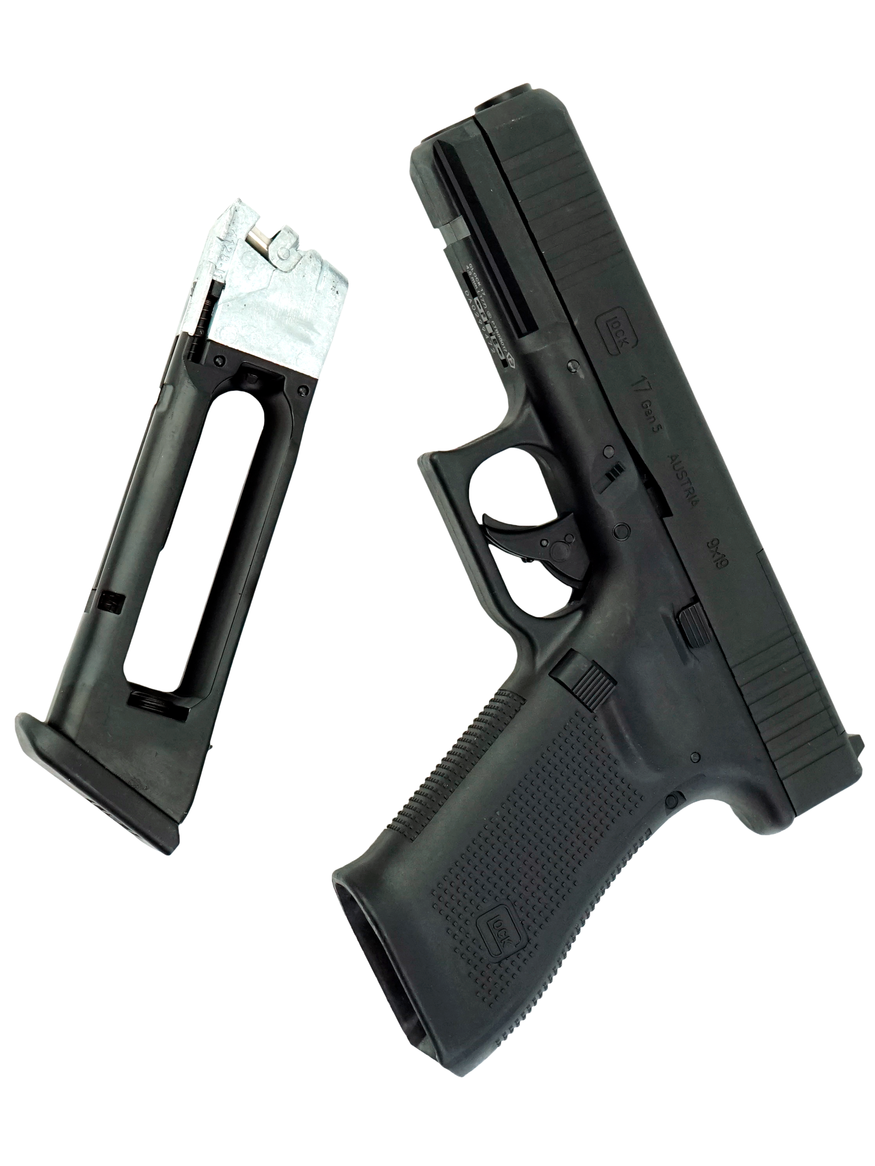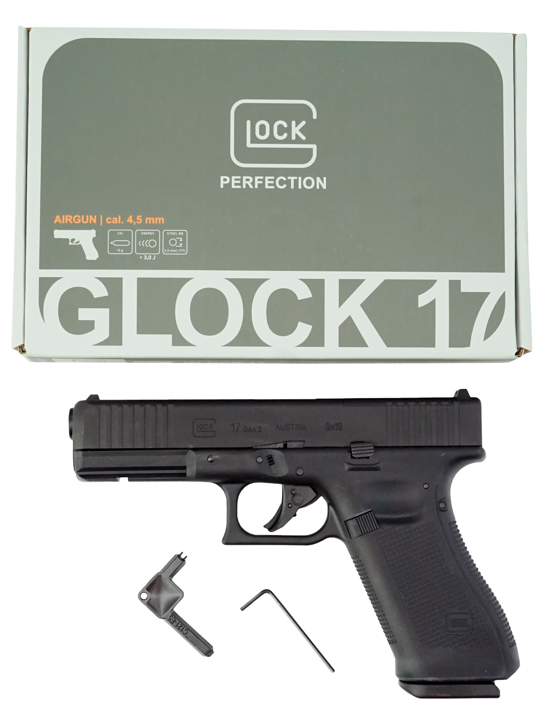 Пневматический Glock 17 Gen 5 MOS выпускает пули со скоростью до 115 м/с и имеет мощность до 3 Дж, что позволяет приобретать его без лицензии лицам старше 18 лет. Для стрельбы используются 12-г баллоны CO2, размещаемые в магазине и прокалываемые поджимным винтом. Пистолет имеет полуавтоматический режим стрельбы и отдачу благодаря Blowback. Предохранитель на спусковом крючке и дополнительный механический предохранитель перед скобой обеспечивают безопасность.