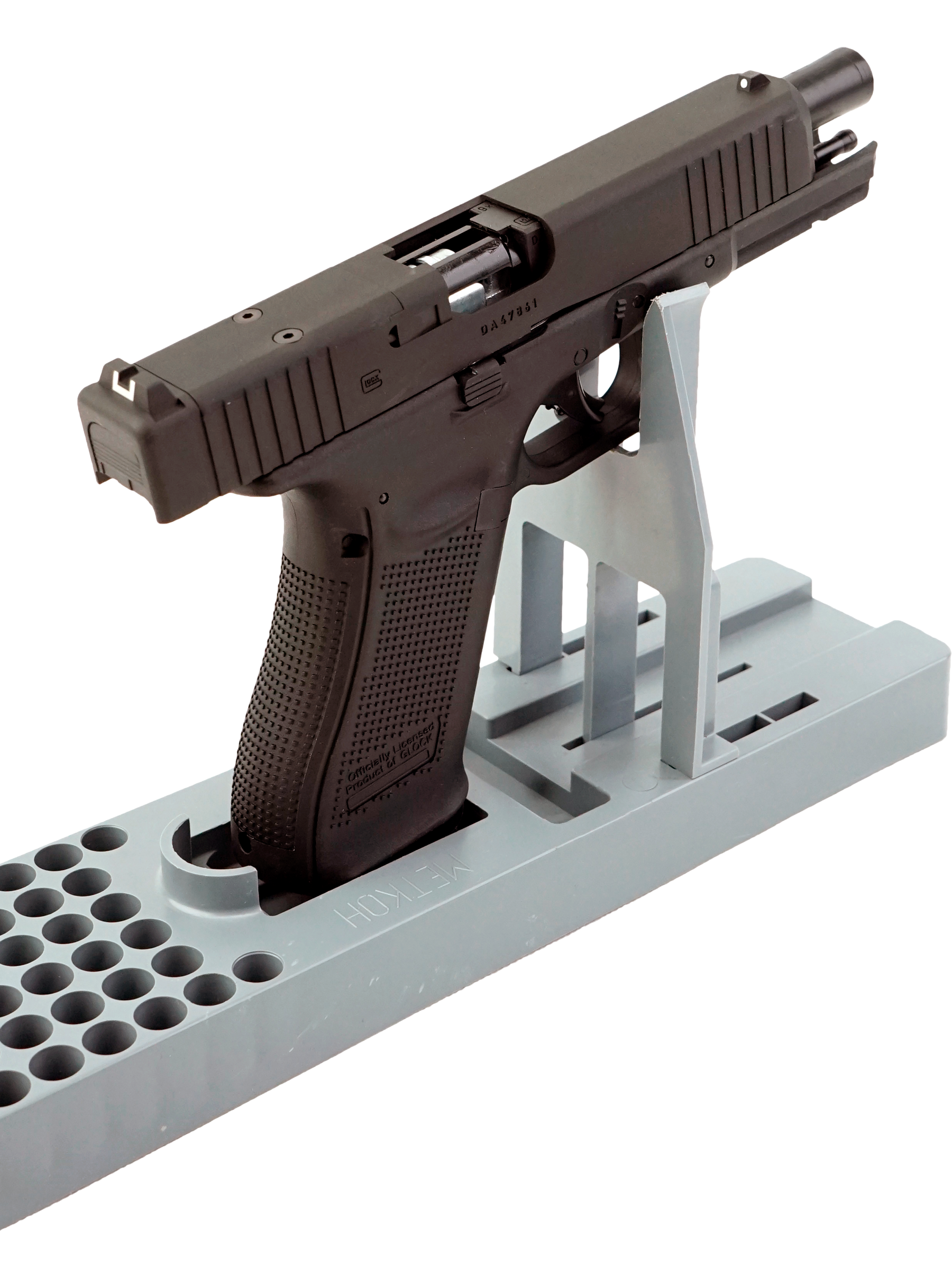 Отличительной чертой данной модели является площадка Modular Optic System (MOS) для установки компактного коллиматорного прицела. Посадочная база расположена в задней части металлического затвора и закрыта съемной крышкой, что позволяет опционально использовать коллиматор. Для стандартного прицеливания предусмотрены открытые механические приспособления с цветовой индикацией.