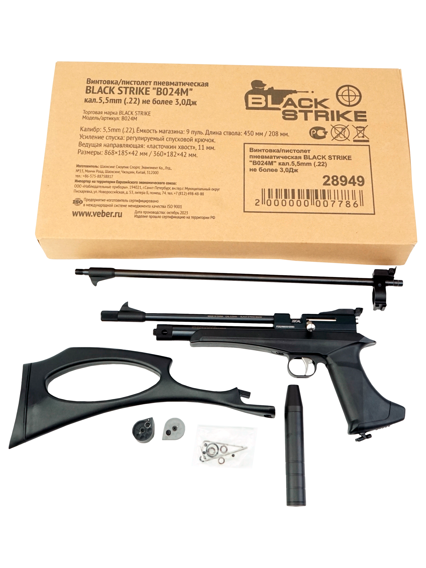 Пневматический пистолет-винтовка Black Strike B-024М — это модульный, функциональный и надежный пневматический агрегат, идеально подходящий для тех, кто ищет универсальное оружие для тренировок, развлечений и самостоятельной практики стрельбы.