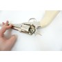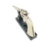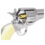 Отдельно нужно рассказать об экстерьере револьвера, корпус оружия цельнометаллический, хромированный, с пластиковыми накладками на рукояти цвета слоновой кости, что, конечно, не могло не сказаться на весе модели - 1,04 кг. Общая длина револьвера 33 см, на корпусе выбито название оружия. Удлиненный ствол выполнен из ружейной стали.