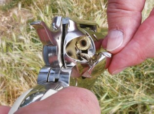 Револьвер стреляет исключительно самовзводом. В комплекте с револьвером идут картриджи – в количестве 6 штук они заряжаются в барабан через специальную дверцу. В комплекте – по 6 единиц картриджей под шарики ВВ и под пули 4,5 мм. Револьвер имеет удобный выбрасыватель гильз. Средняя скорость выстрела – 137 м/с.