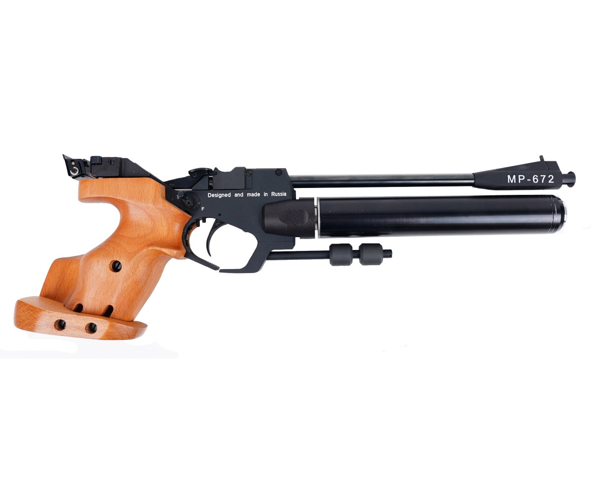 Пистолет МР-672 прекрасно подойдет для тренировок, а так же для выступления на серьезных спортивных мероприятиях. Модель отличается повышенной кучностью, дальностью, а так же высоким качеством сборки.