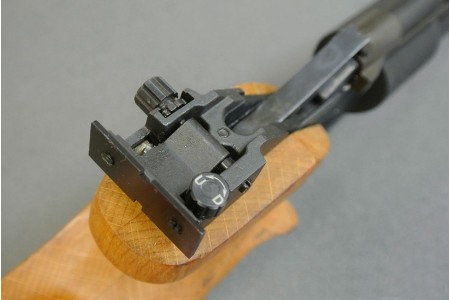 Мушка и целик пистолета металлические, открытого типа. Нарезы внутри ствола повышают кучность стрельбы. Необходимо учитывать, что данная модификация рассчитана исключительно на правшей.