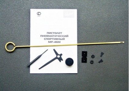 Комплектация (?): | пистолет, отвертка, выколотка, шомпол, манжета поршня, кольцо уплотнительное, целик, мушка - 2 шт., паспорт (инструкция) |