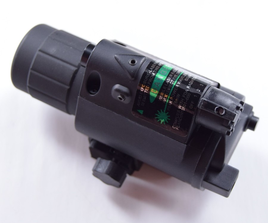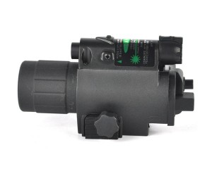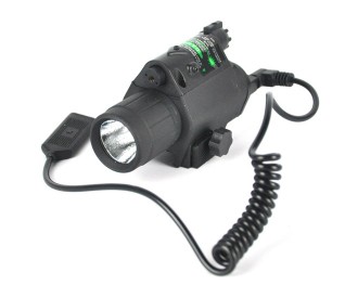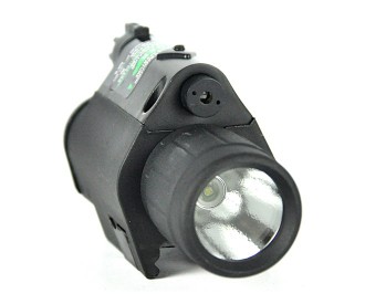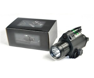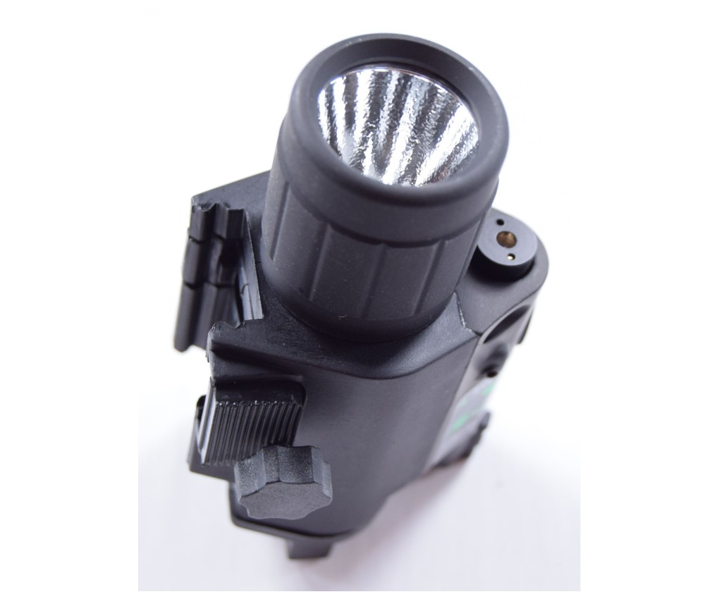 Фонарь подствольный P24-0307 с лазерным прицелом (зеленый луч) имет быстросъемный зажим на планку Weaver / Picatinny с винтом, который можно закрутить рукой. Новый дизайн, легкий и компактный корпус.