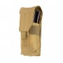 Классический подсумок для двух магазинов АК или AR. Клапан фиксируется на велкро. При необходимости его можно заправить внутрь для обеспечения быстрого доступа к магазинам. В таком положении их удерживает эластичная широкая резинка, которая опоясывает верх отделения. На клапане установлена стропа для удобства манипуляций в перчатках.