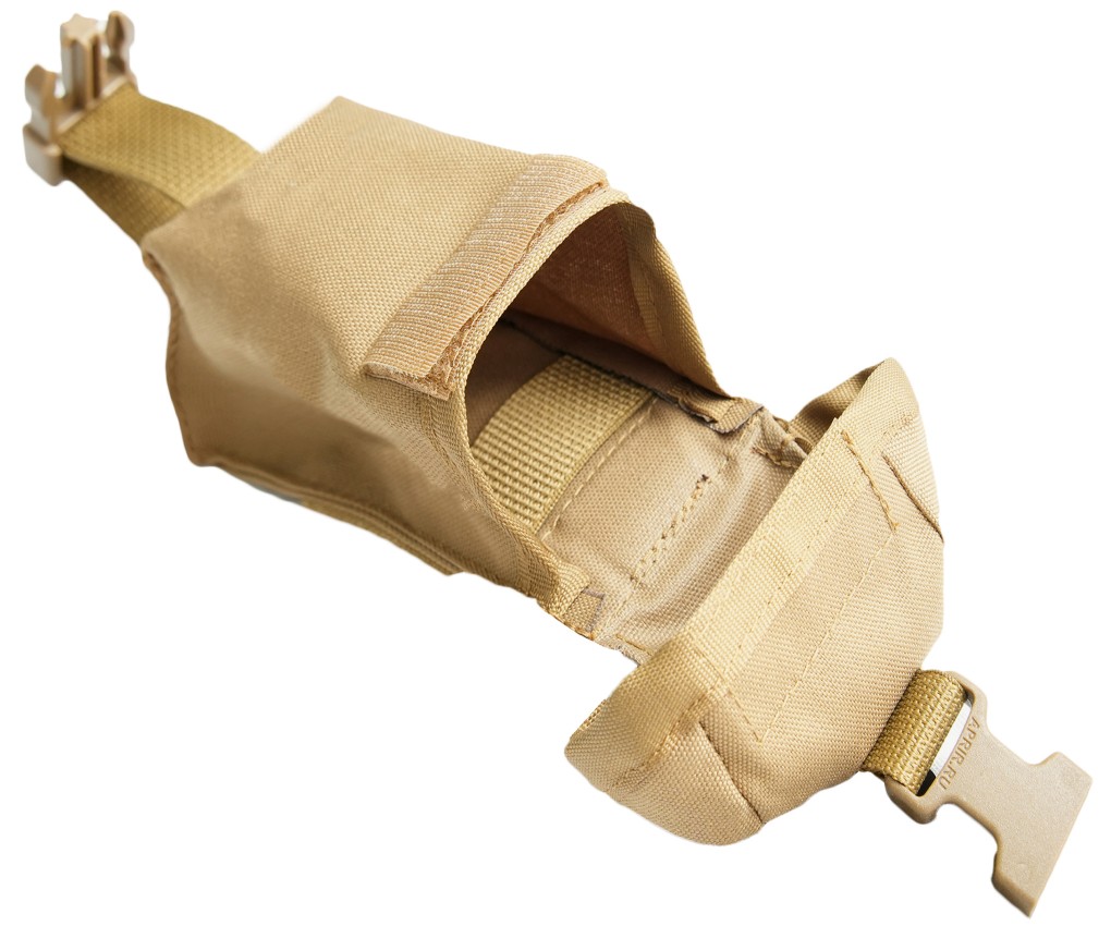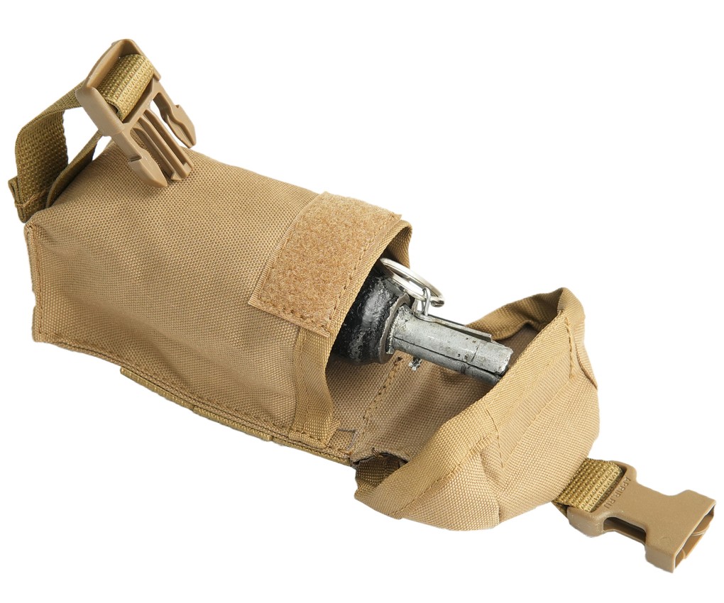 Увеличенный клапан позволяет переносить гранату собранной – нет щелей и зазоров, кольца запалов защищены от случайной инициации. Клапан закрывается на фастекс и велкро. В таком случае рычаг можно фиксировать внутренней стропой.