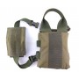 Сумка имеет эластичные стропы на лицевой стороне, эластичные стропы с правой стороны и стропы MOLLE с левой стороны. На клапане установлен хлястик для быстрого раскрытия и доступа к содержимому. Две молнии по бокам подсумка, на бегунках установлены пуллеры для удобства манипуляций.