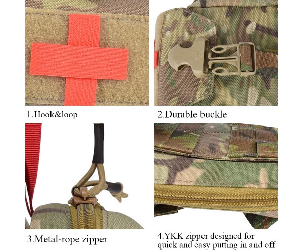 Военная аптечка Emersongear EM6368 призвана подготовить вас к неожиданностям и обезопасить ваши дальнейшие приключения. Изготовлена из высококачественного нейлона 1000D для лучшей прочности на разрыв и водонепроницаемости. Поставляется с застежкой-молнией YKK и высококачественной надежной пряжкой. Толстая красная утягивающая ручка легко идентифицируется и используется в чрезвычайной ситуации.