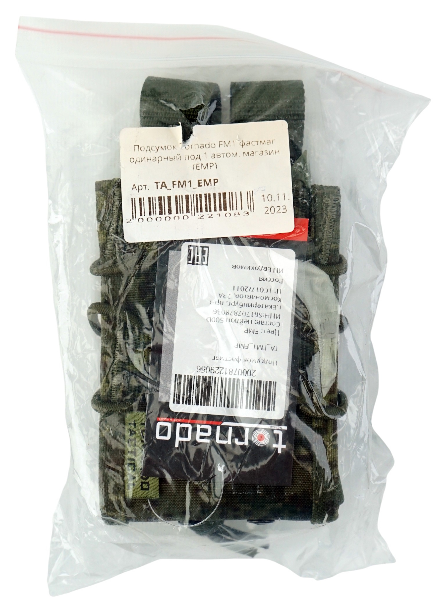 Подсумок от производителя Tornado Tactical (Россия) типа фастмаг универсальный под 1 магазин. Изготовлен из нейлона 500D, внутренняя рамка из высокопрочного полиуретана, которая под давлением фиксирует магазин в подсумке, не позволяя ему выпасть и не мешает извлечению.