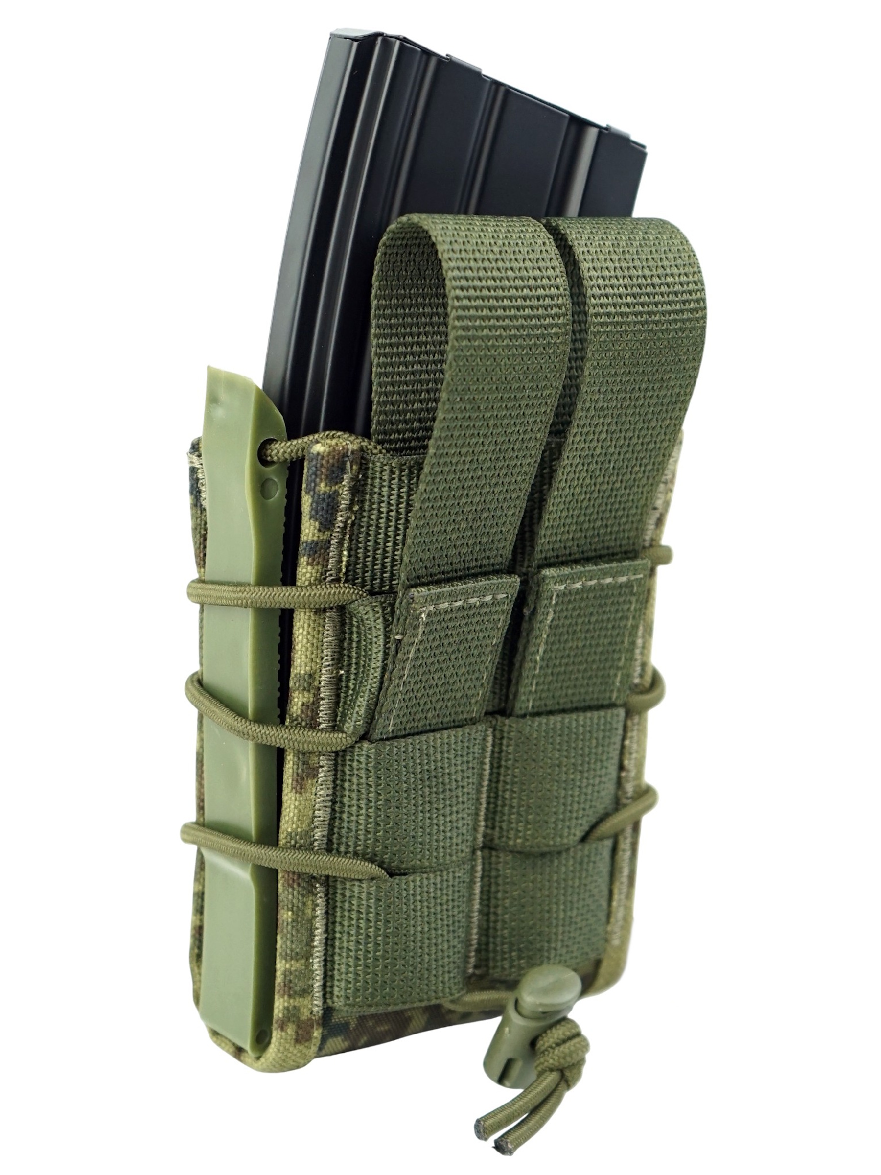 Эластичный жгут регулируется и дополнительно фиксирует магазин, защищая от его утери.