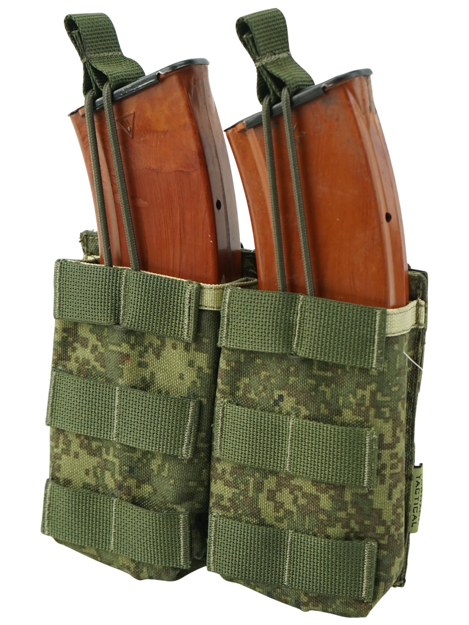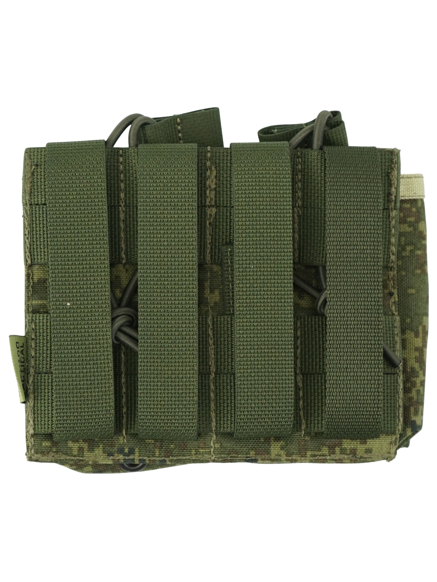Оружейный подсумок открытого типа, также известный как "штурмовой". В каждую из двух секций возможно поместить по одному магазину серии АК, M4/AR15, АС ВАЛ/ВСС и аналогичные по размерам. Удержание магазина внутри секции осуществляется за счет эластичного шнура с "язычком". Регулируя длину шнура можно адаптировать подсумок под магазины той или иной серии.