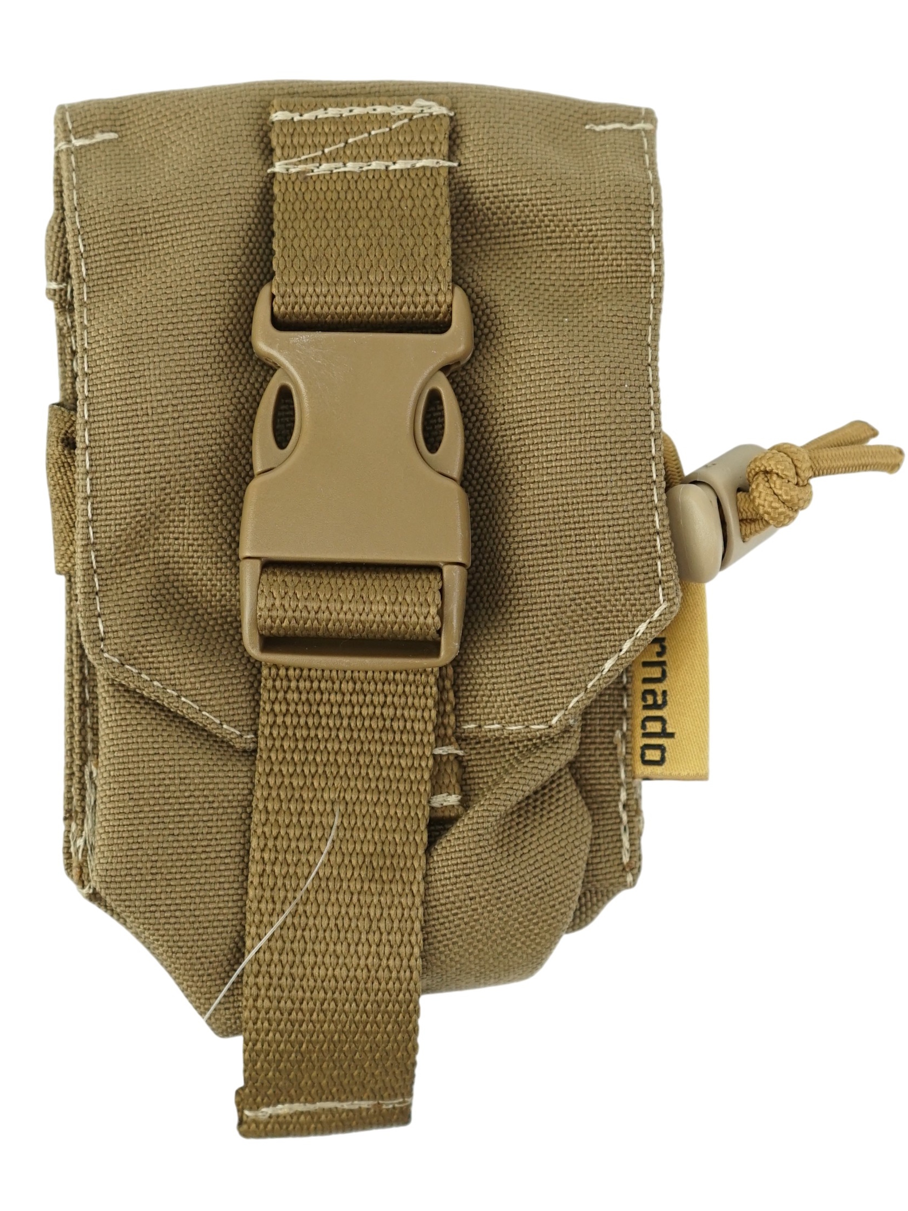 Подсумок гранатный от производителя Tornado Tactical (Россия). Изготовлен из материала нейлон 1000D. Подсумок застегивается на пластиковый фастекс, регулировочная стропа позволяет утянуть внутренне пространство подсумка до нужных размеров. Также на клапане в верхней части прошиты края для более четкой фиксации гранаты в подсумке.