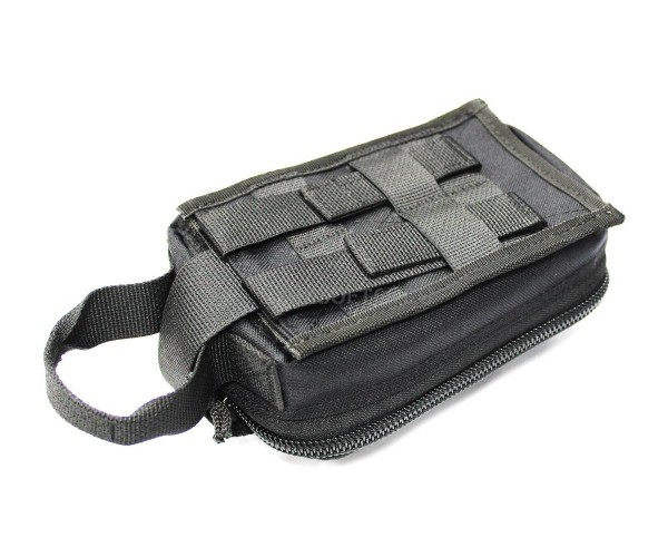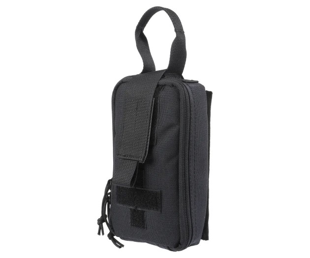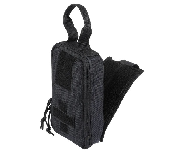 Отрывная аптечка среднего размера для размещения медикаментов и перевязочного материала для оказания первой помощи в полевых условиях. Подсумок с медикаментами при помощи липучки велкро крепится на платформе и страхуется хлястиком. Если отстегнуть хлястик, то резко потянув за ручку, подсумок можно сорвать с платформы и либо передать партнеру, либо начать использовать самому.