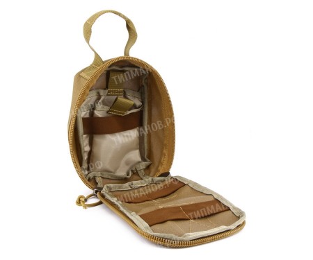 Отделение закрывается на двустороннюю молнию. Внутри для организации содержимого нашиты эластичные ленты и карманы. Основание подсумка (платформа) крепится на разгрузке или тактическом поясе благодаря стропам MOLLE.
