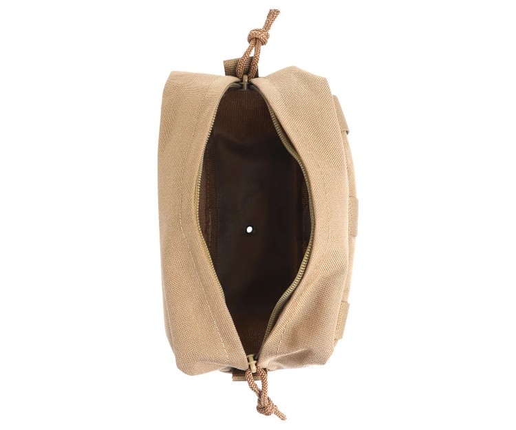 Горизонтальный утилитарный подсумок от компании Tornado Tactical. Используется для размещения различных предметов (фонарь, инструменты, перчатки и пр.). Можно использовать для организации ИПП/мини-аптечки. Подсумок закрывается на двустороннюю молнию, внутри нет нашитых строп и резинок. Крепление подсумка на снаряжении происходит за счет строп MOLLE, расположенных на обратной стороне.