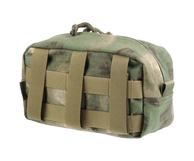 Горизонтальный утилитарный подсумок от компании Tornado Tactical. Используется для размещения различных предметов (фонарь, инструменты, перчатки и пр.). Можно использовать для организации ИПП/мини-аптечки. Подсумок закрывается на двустороннюю молнию, внутри нет нашитых строп и резинок. Крепление подсумка на снаряжении происходит за счет строп MOLLE, расположенных на обратной стороне.