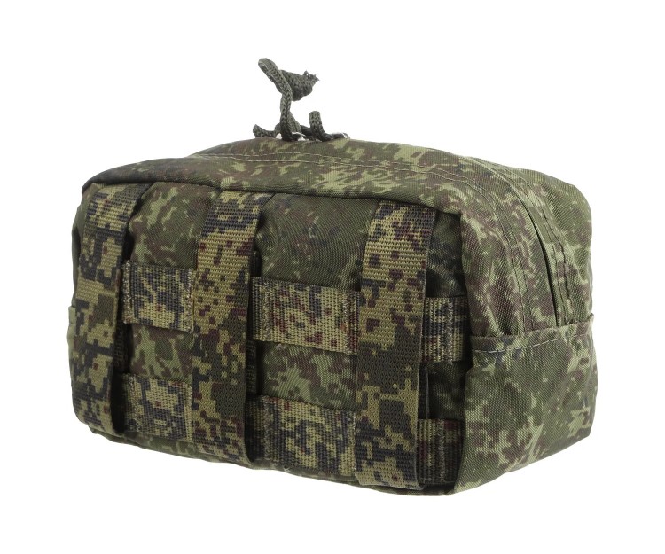 Горизонтальный утилитарный подсумок от компании Tornado Tactical. Используется для размещения различных предметов (фонарь, инструменты, перчатки и пр.). Можно использовать для организации ИПП/мини-аптечки. Подсумок закрывается на двустороннюю молнию, внутри нет нашитых строп и резинок. Крепление подсумка на снаряжении происходит за счет строп MOLLE, расположенных на обратной стороне.