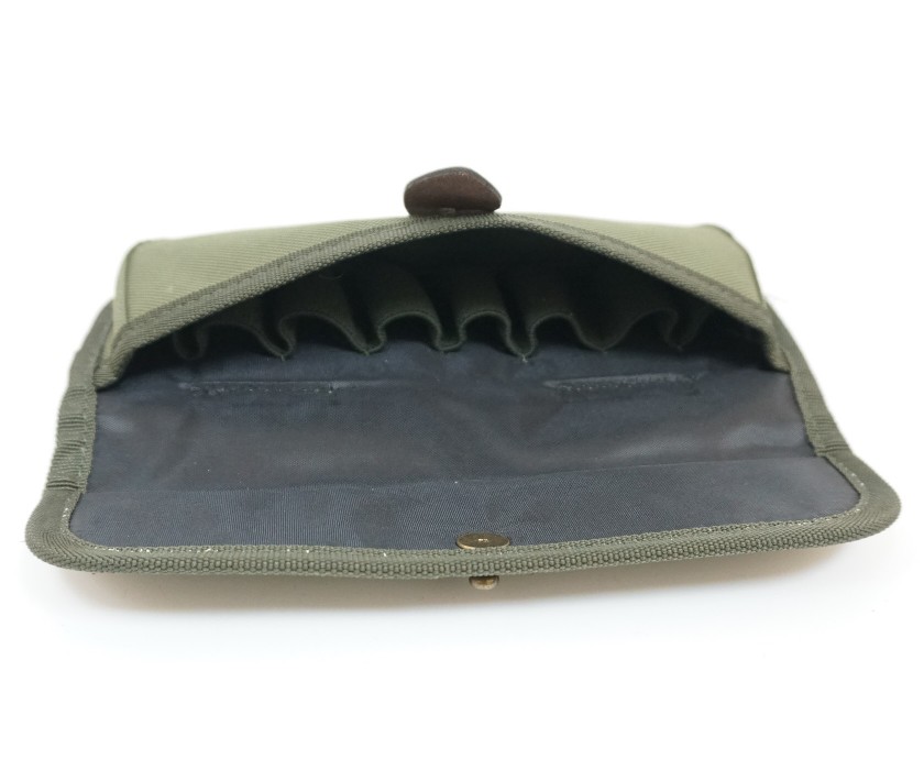 Однорядная патронная сумка закрытого типа из ткани кордура для хранения и транспортировки восьми патронов 12, 16, 20 калибра. Крепится с помощью шлейки на поясной ремень. Кобурная застёжка подсумка из натуральной кожи. Фиксация патронов в сумке за счёт прорезиненной ленты. Габариты подсумка в застёгнутом состоянии 210 мм (длина) х 75 мм (ширина) х 40 мм (высота).