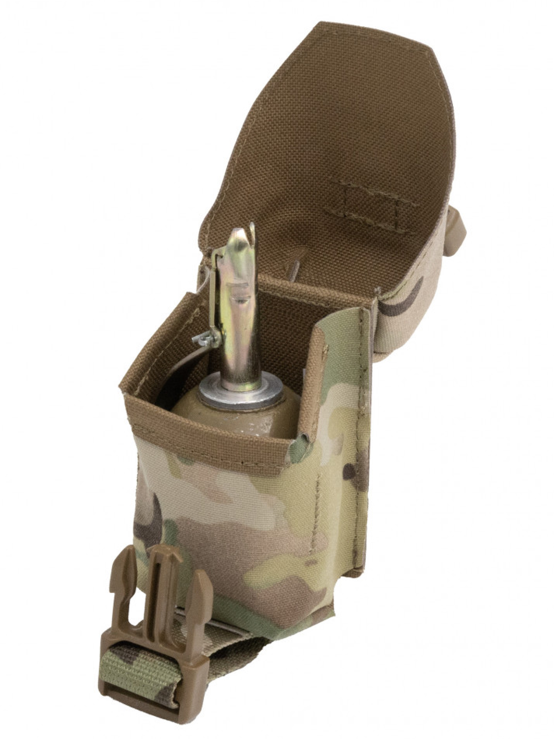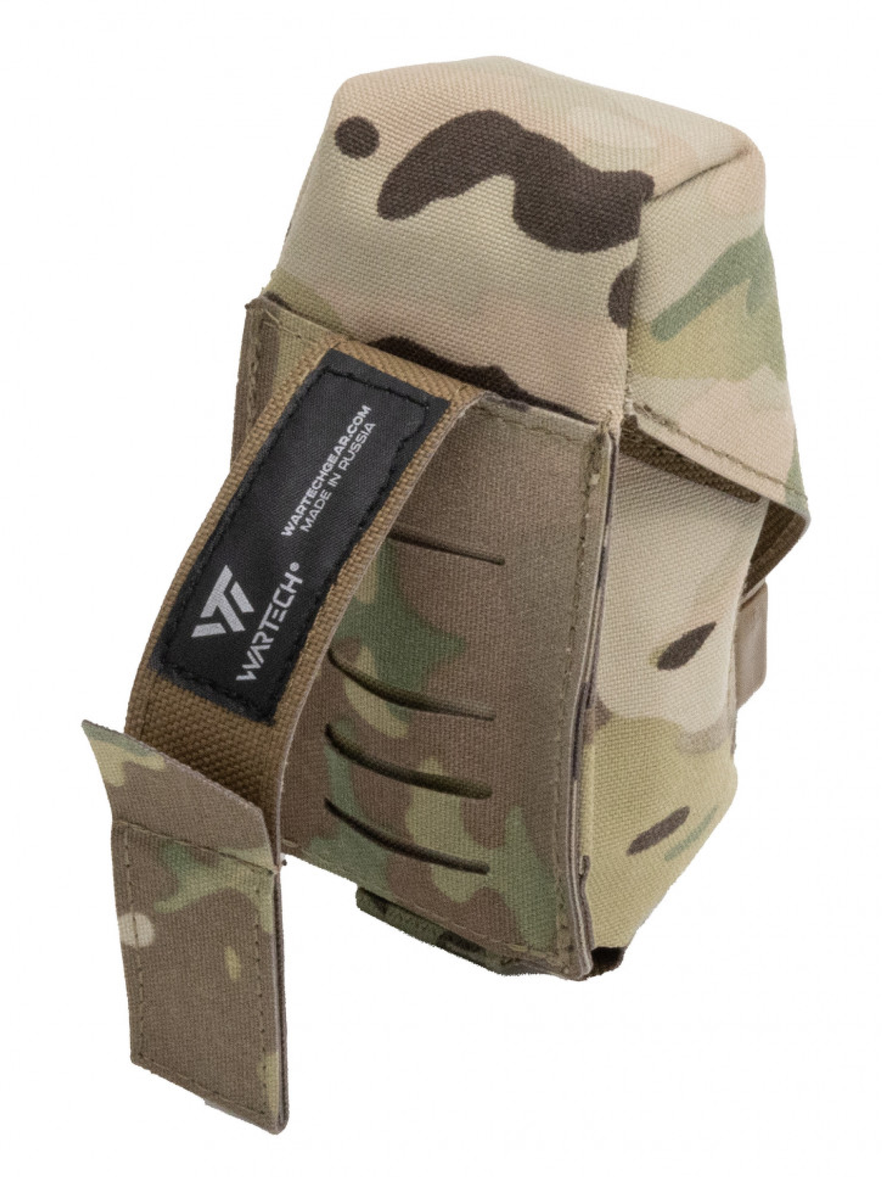 Гранатный подсумок предназначен для переноски гранаты РГД/РГО или схожих по размерам гранат на бронежилете, разгрузочном жилете или поясе, имеющих систему крепления MOLLE. Выполнен из ламинированной износостойкой ткани.