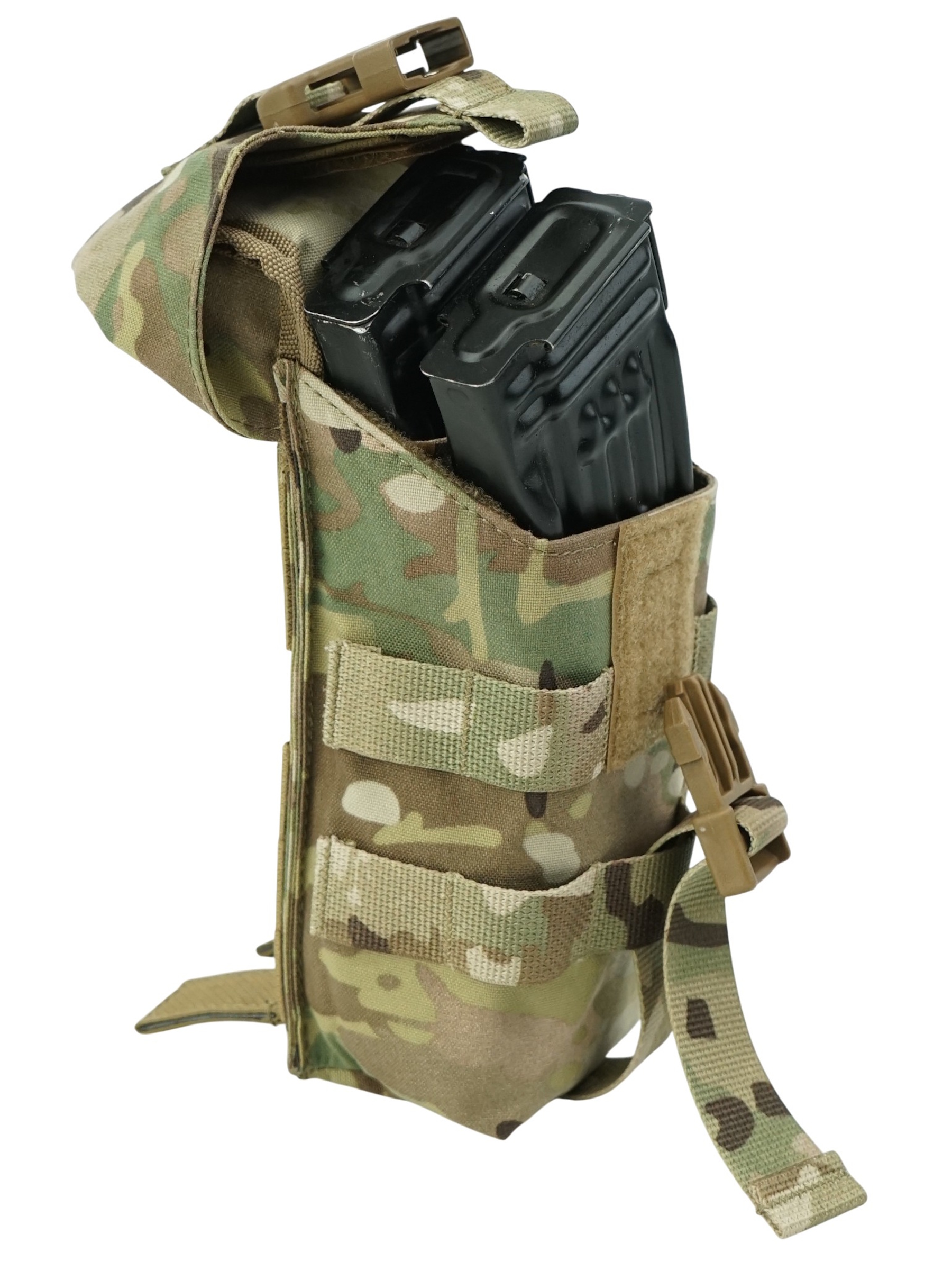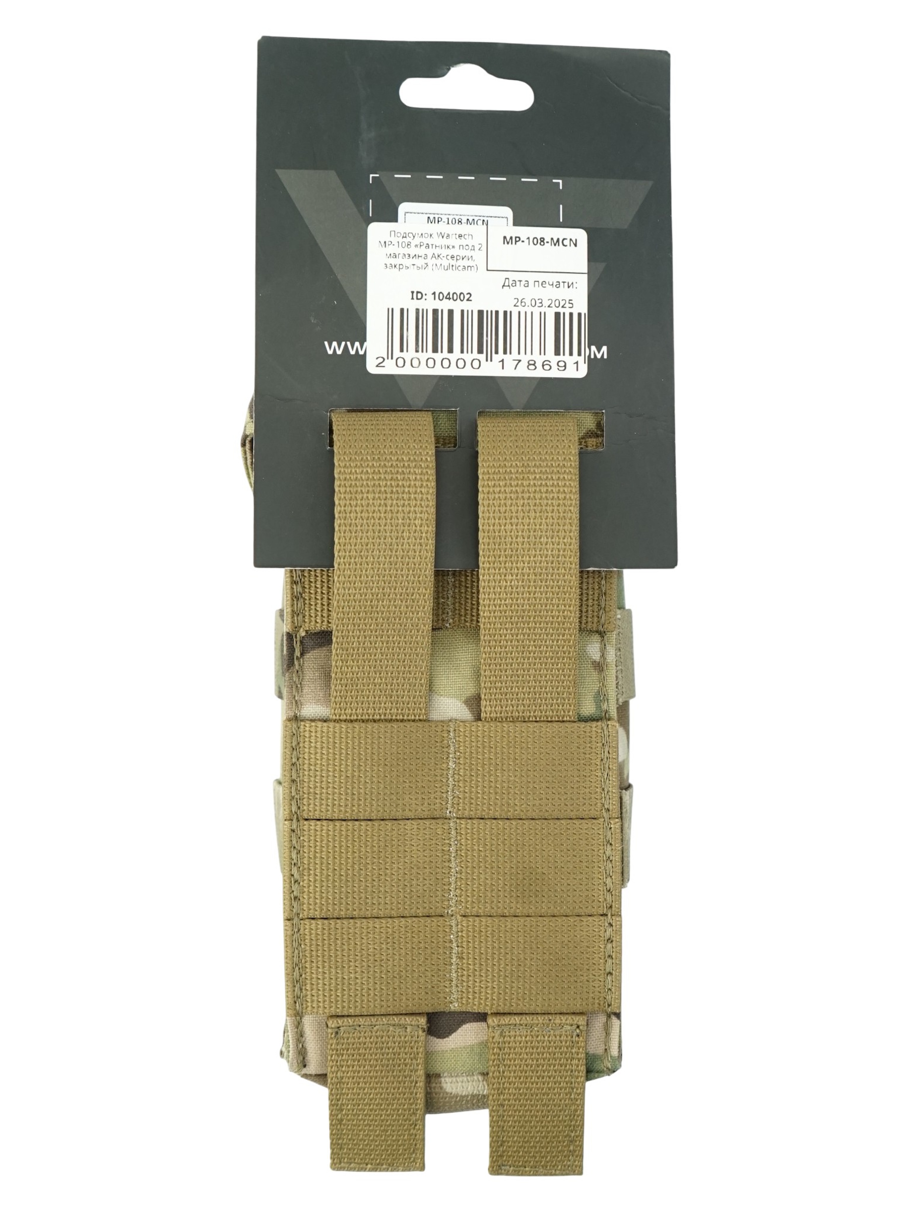 Подсумок закрытый Wartech MP-108 предназначен для размещения 2 магазинов АК-серии, на бронежилете, разгрузочном жилете и поясе. Подсумок закрывается на клапан с липучкой велкро и застежкой. Доступен в различных цветах, данный вариант в цвете multicam.