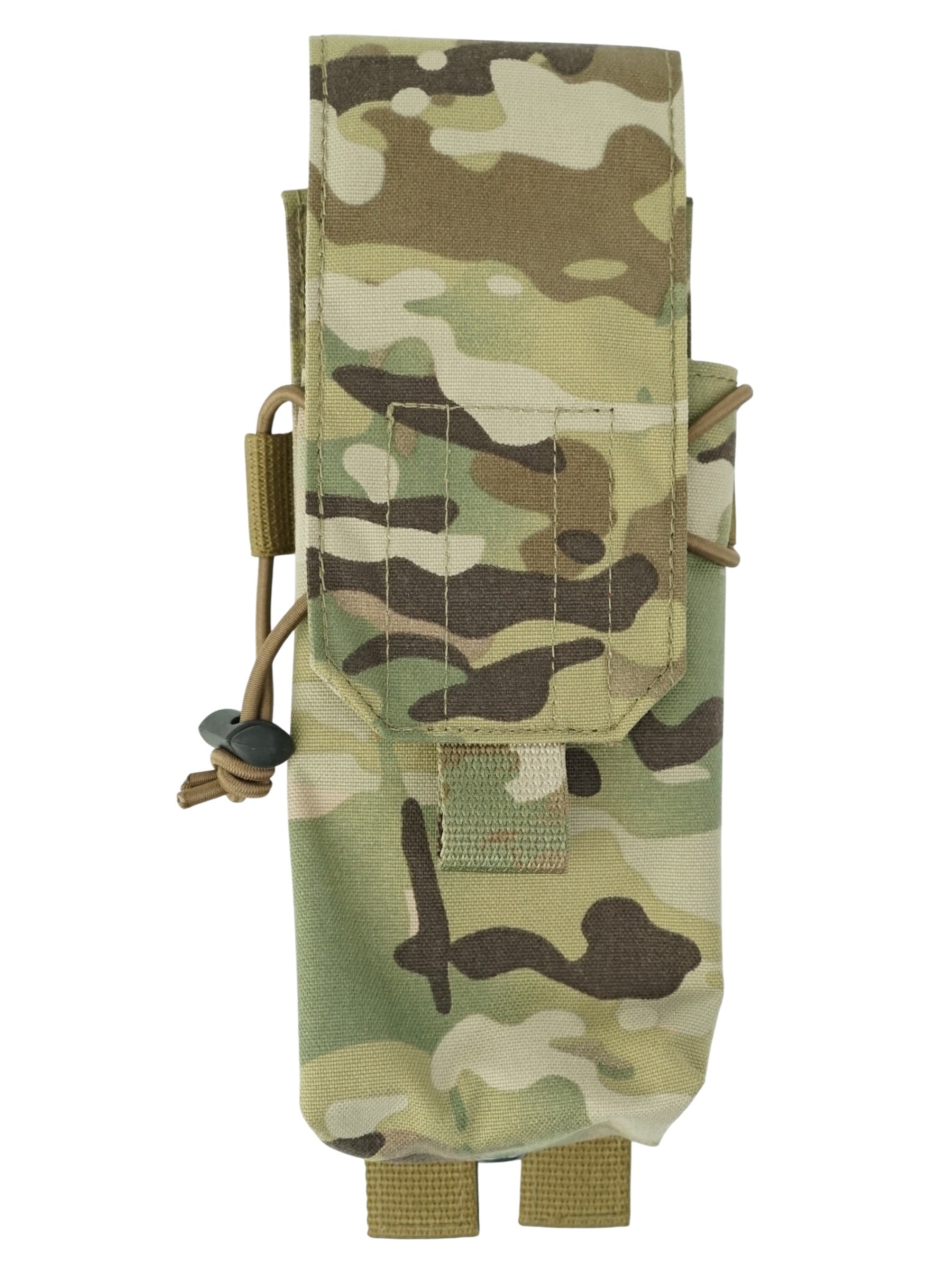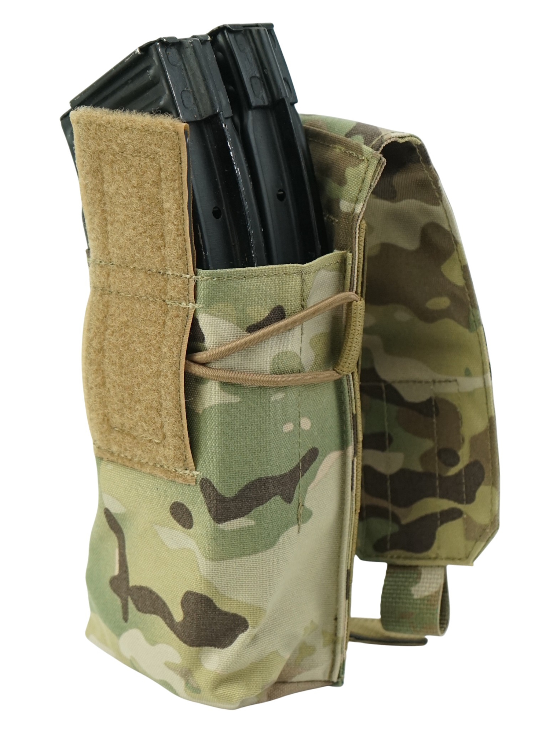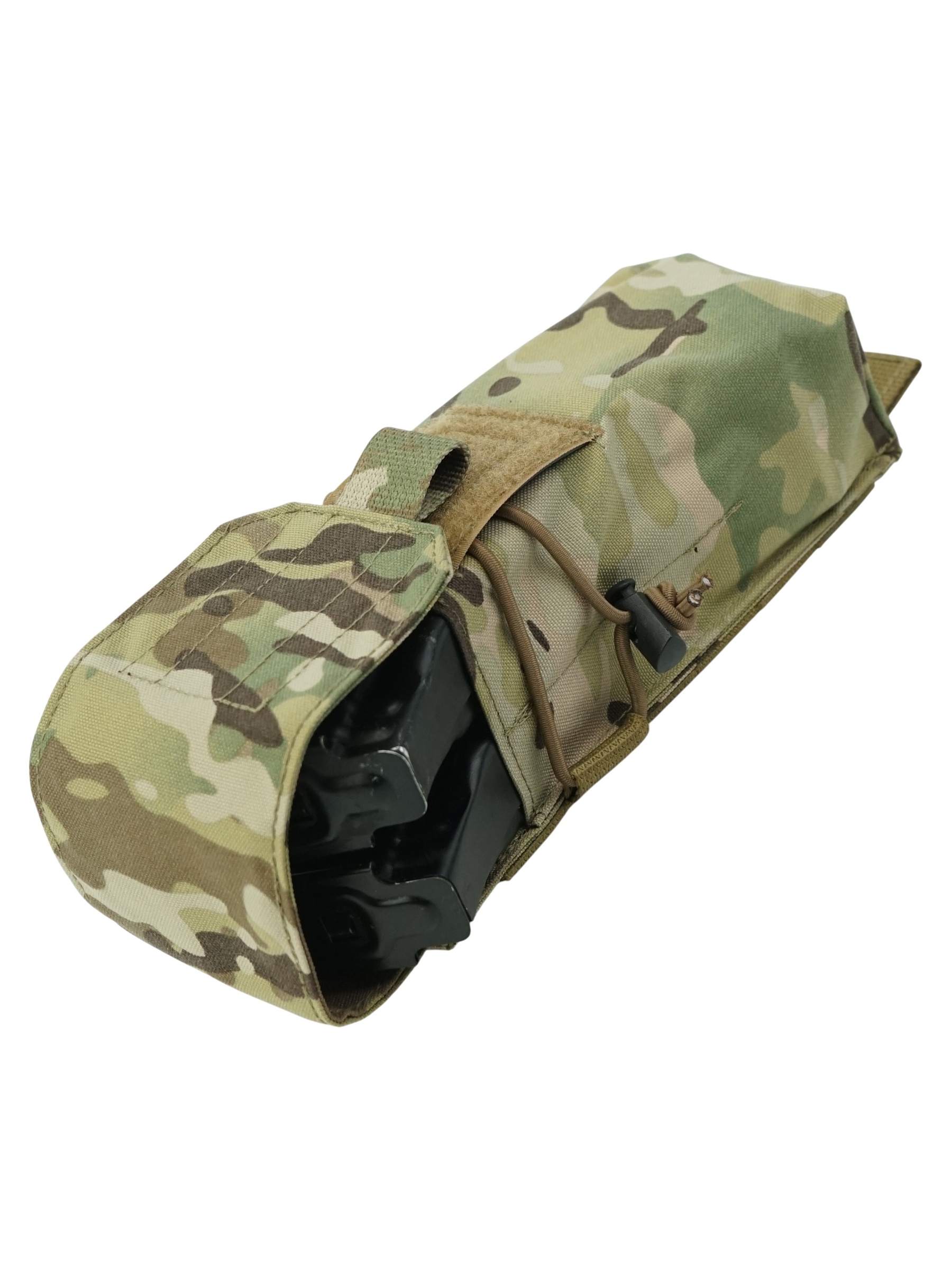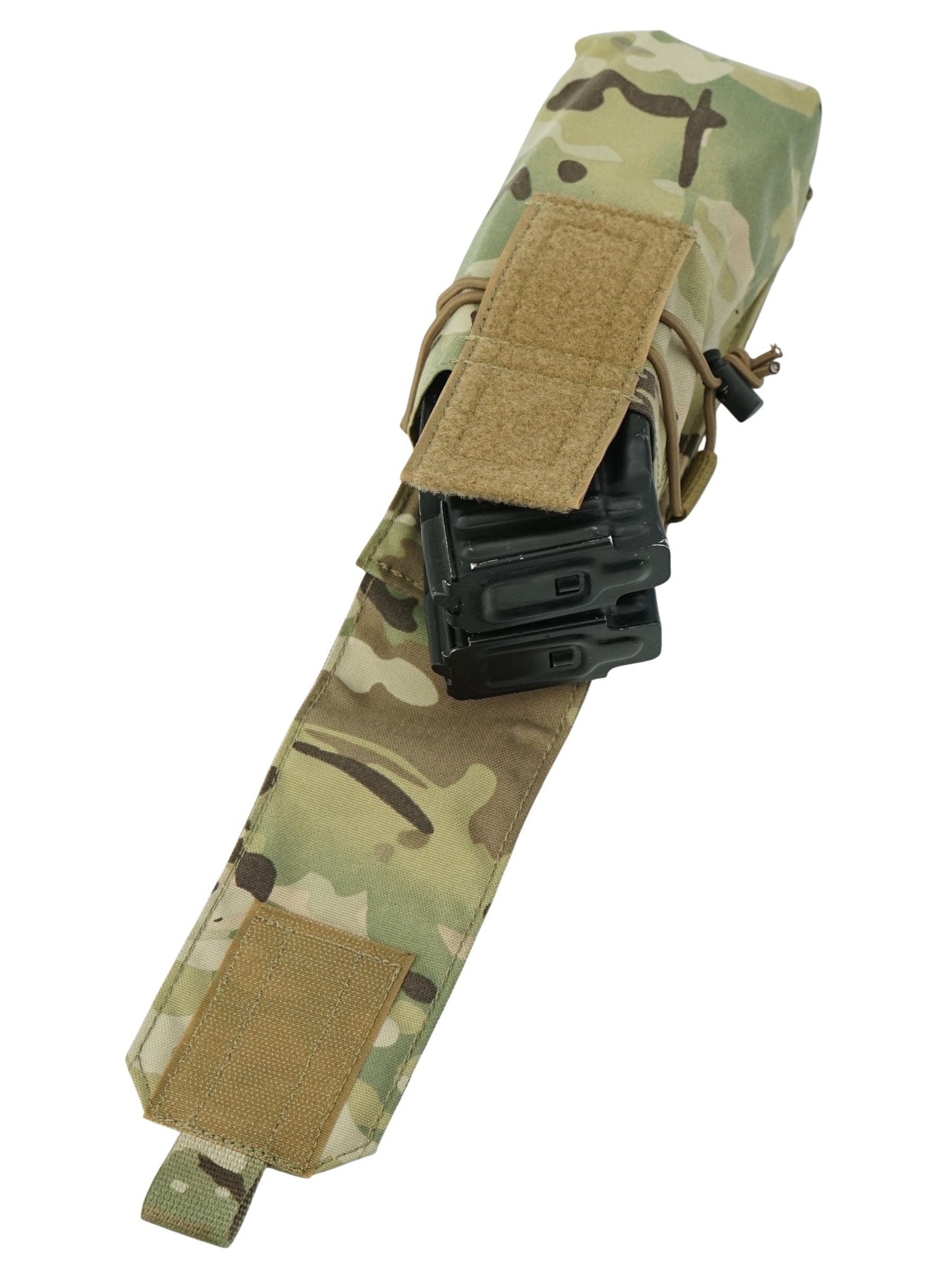Подсумок возможно использовать как открытый, убрав клапан внутрь, в этом случае магазин удерживается утягивающей резинкой.