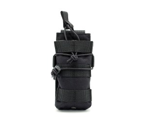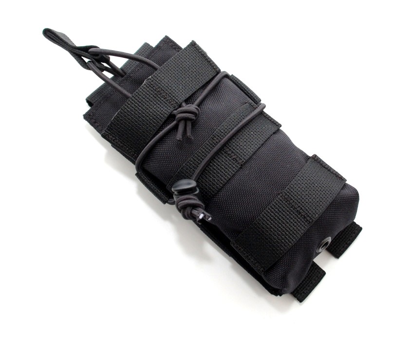 Магазин фиксируется с помощью резинки с хлястиком, что обеспечивает быстрое извлечение и защищает от утери. Так же возможно размещение на обычном ремне. Доступен в различных цветах, данный вариант в черном цвете.