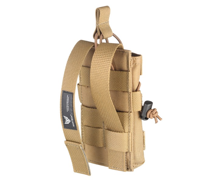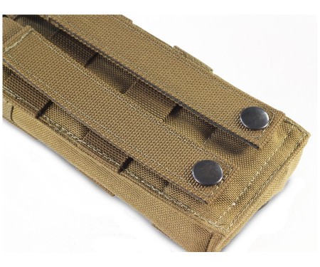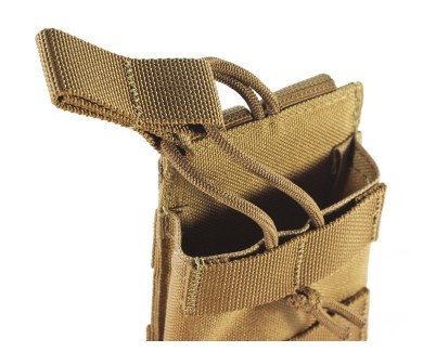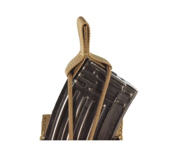 Магазин фиксируется с помощью резинки с хлястиком, что обеспечивает быстрое извлечение и защищает от утери. Так же возможно размещение на обычном ремне. Доступен в различных цветах, данный вариант в цвете койот.