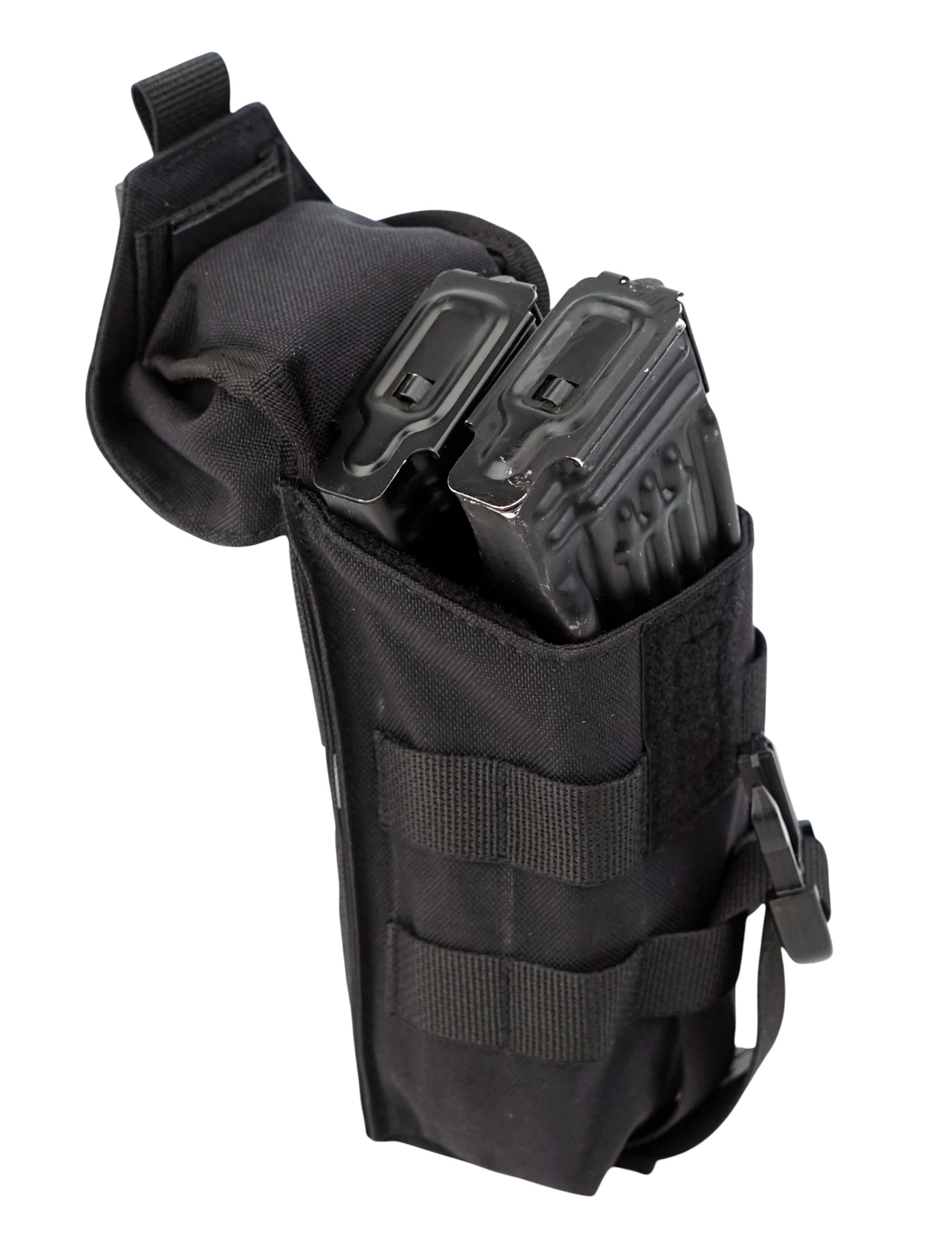 Подсумок закрытый Wartech MP-108 предназначен для размещения 2 магазинов АК-серии, на бронежилете, разгрузочном жилете и поясе. Подсумок закрывается на объёмный клапан с липучкой и фастексом для предотвращения утери магазинов, попадания грязи внутрь подсумка. Доступен в различных цветах, данный вариант в черном цвете.