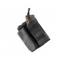 Подсумок оснащен вариативной системой закрывания: на клапан с липучкой, либо с помощью резинки. Так же оснащен утягивающей вокруг резинкой, что надежно защищает магазин от утери. Заправив клапан внутрь подсумка, допустимо его использование как открытого. Возможно размещение на обычном ремне. Доступен в различных цветах, данный вариант в черном цвете.