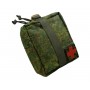 Закрывается на молнию, отсек открывается полностью и дает полный доступ к содержимому аптечки, на внешней части аптечки, закреплена медицинская нашивка на велкро, что упрощает идентификацию назначения. За счет отстегивания подсумка от платформы, к нему можно получиться максимально удобный доступ. Возможно размещение на обычном ремне. Доступен в различных цветах, данный вариант в цвете камуфляж.