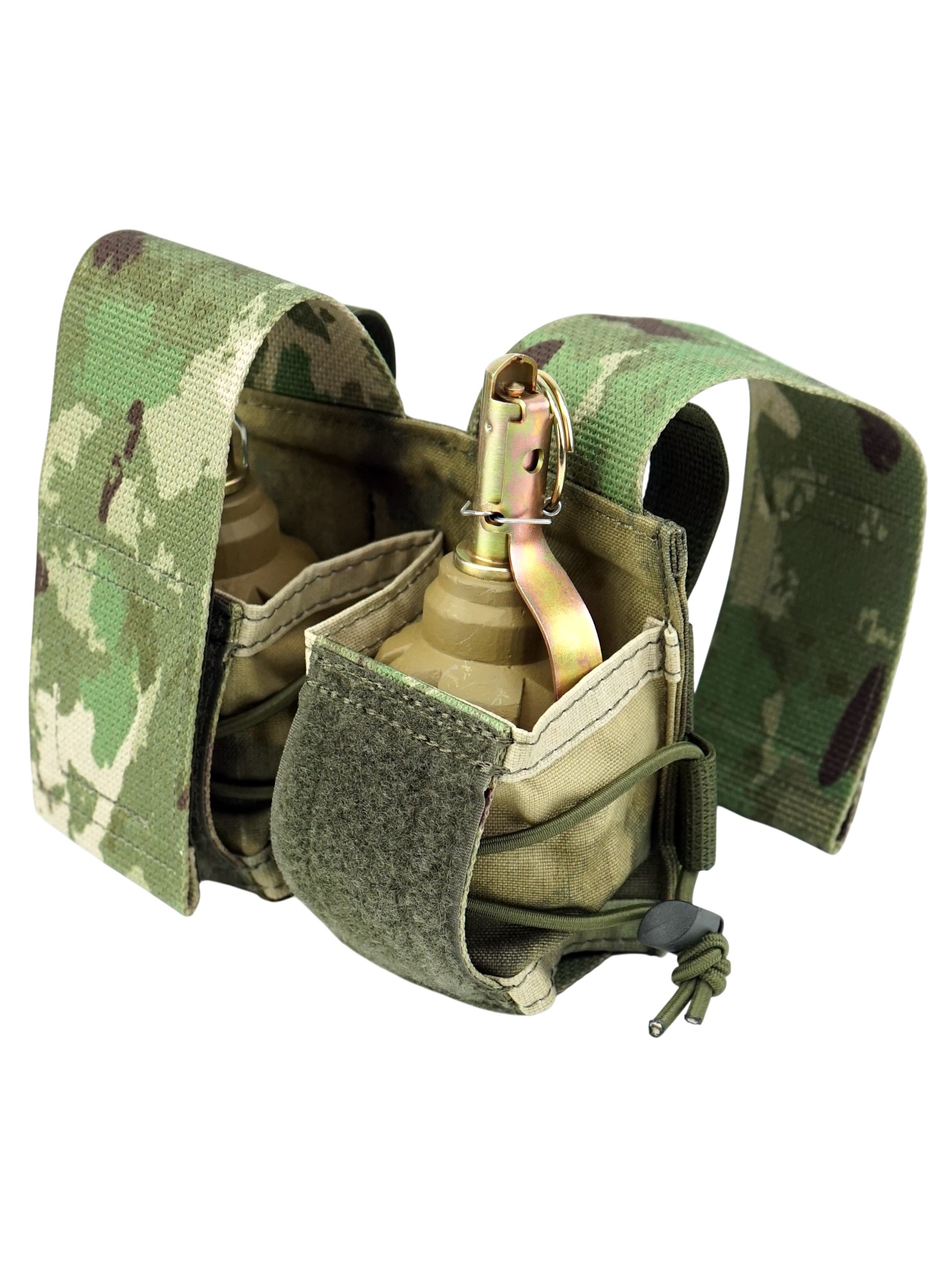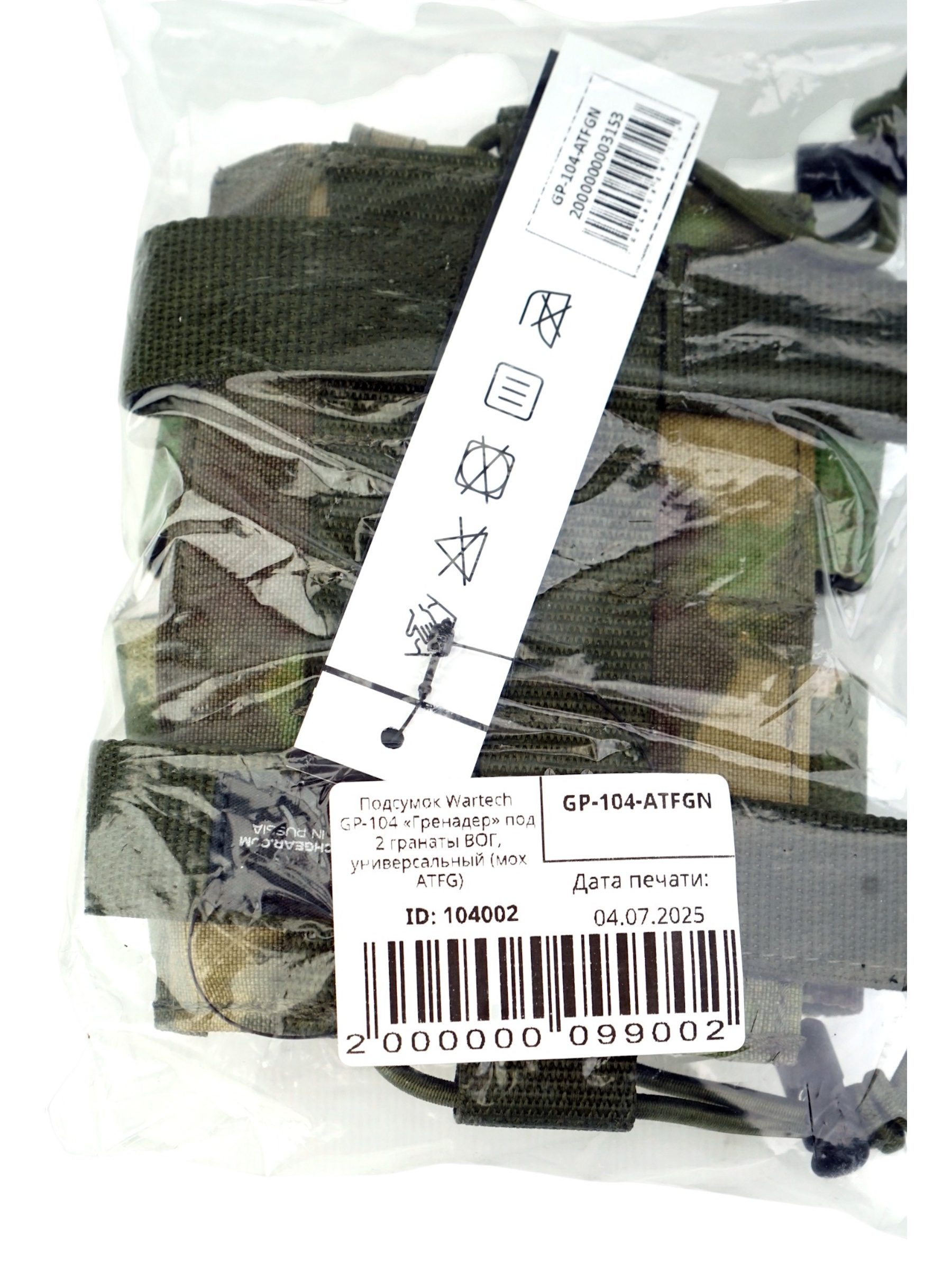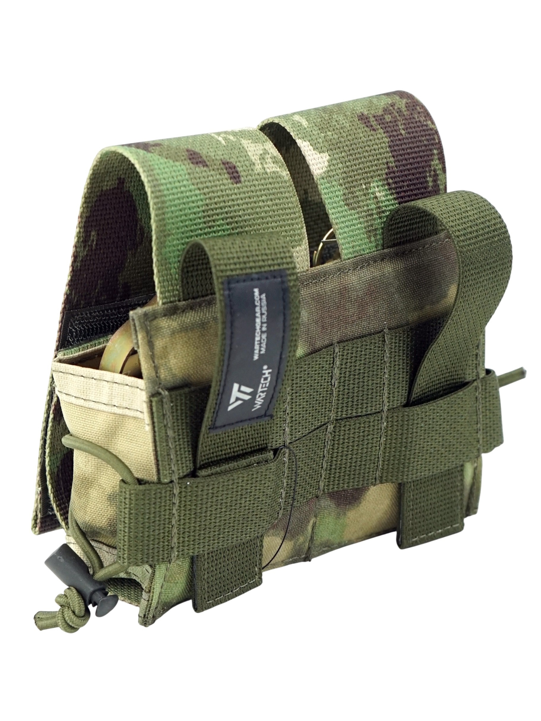 Двойной универсальный подсумок Wartech GP-104 для зарядов ВОГ-25, разработанный с применением опыта сотрудников спецподразделений РФ. Подсумок подойдет для любых схожих по габаритам вещей, в частности ручных гранат. Подсумок закрывается на клапан с липучкой и оснащен резинками утяжками для регулирования объема.