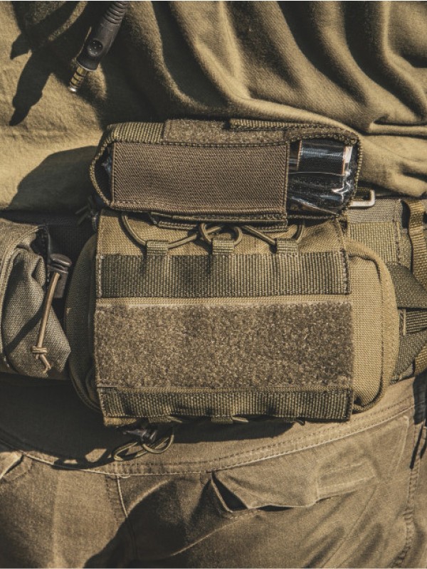 Конструкция подсумка подразумевает его размещение на задней части разгрузочного пояса с сохранением удобства извлечения левой и правой руками.