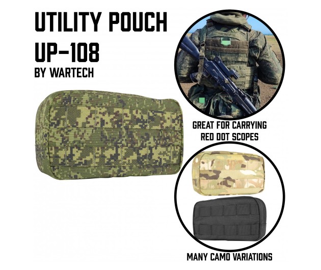 Утилитарный подсумок Wartech UP-108 предназначен для переноски различного оборудования на бронежилете, разгрузочном жилете или поясе, имеющих систему крепления MOLLE. Простая и проверенная компоновка: доступ внутрь подсумка через прорезь сверху и классическое закрытие на молнию для быстрого доступа.